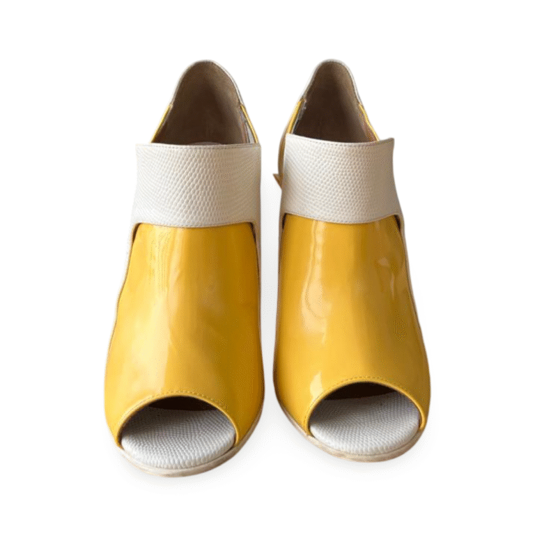 Fendi Yellow Patent and White Leather Peep-Toe Booties – Size 37