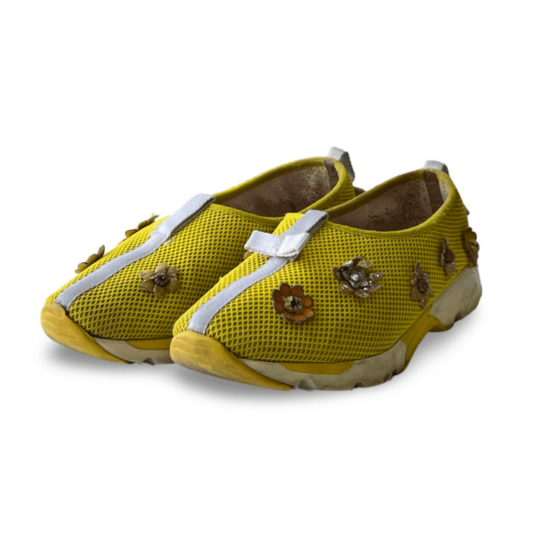 Christian Dior Yellow Floral Embellished Fusion Sneakers