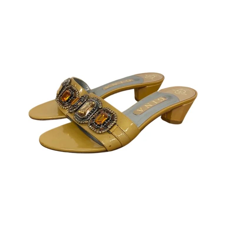 Gina Gold Leather Crystal Embellished Open Toe Mule Size 38.5