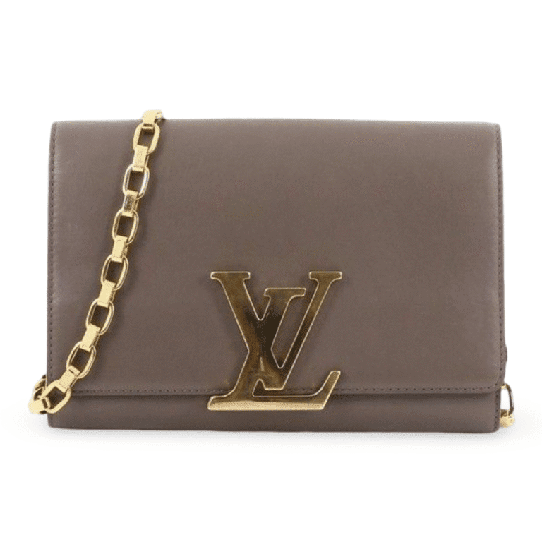 The Louis Vuitton Chain Louise GM is a sophisticated and timeless shoulder bag crafted from luxurious grey calfskin leather. It
