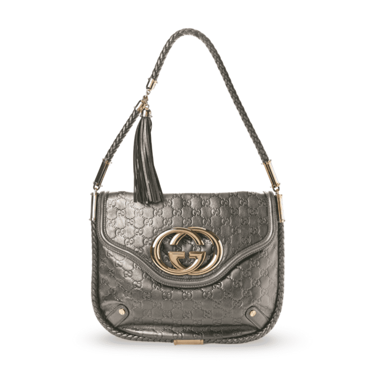 The Gucci Silver Guccissima Patent Leather Sneakers combine iconic luxury with everyday practicality. Crafted in shimmering silver patent leather, these