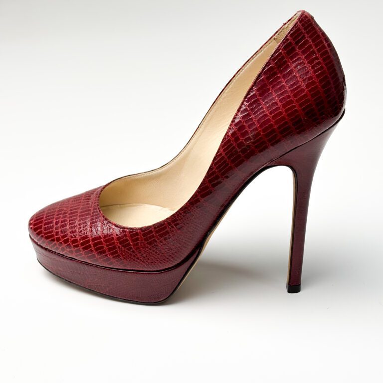 Jimmy Choo Red Lizard Embossed Leather Cosmic Platform Pumps Size 35