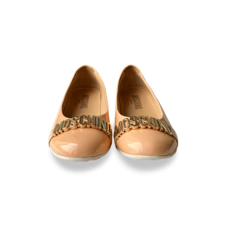 Moschino Patent Leather Logo Embellished Ballet Flats Size 34 (Peach)