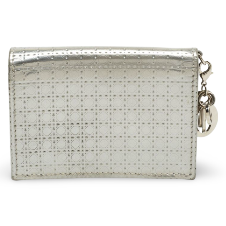 Dior Silver Micro Cannage Patent Leather Mini Lady Dior Card Case