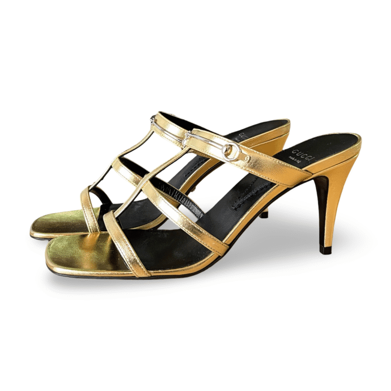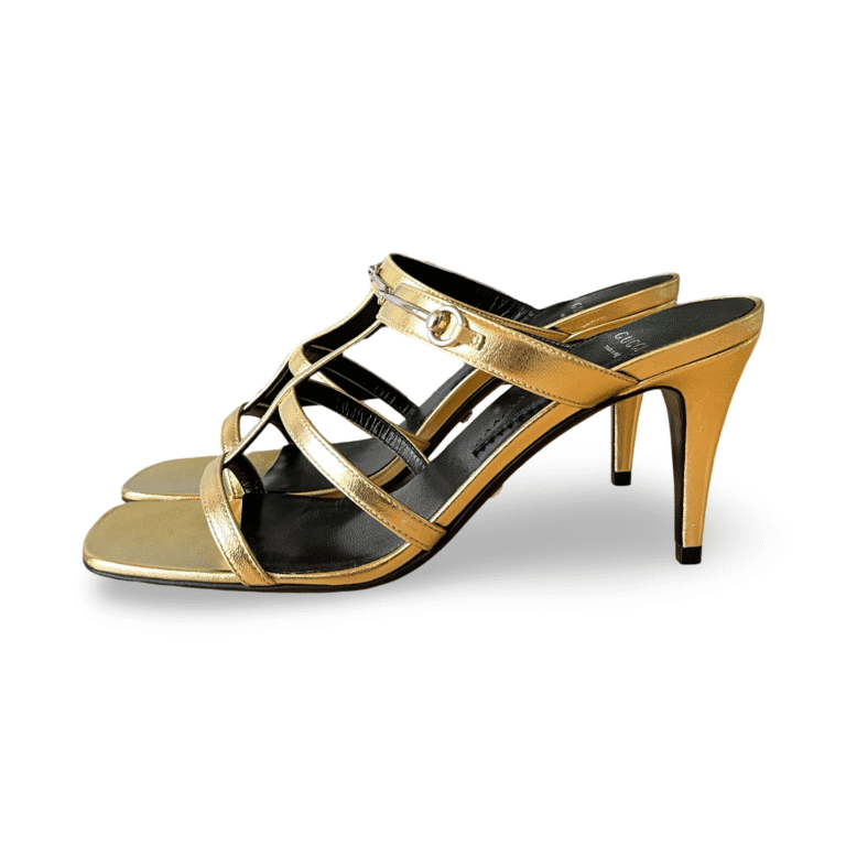Gucci Horsebit Metallic Leather Mules Size 38