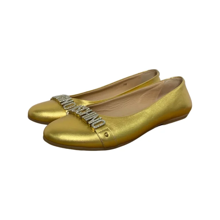 Moschino Gold Metallic Leather Logo Embellished Ballet Flats Size 38