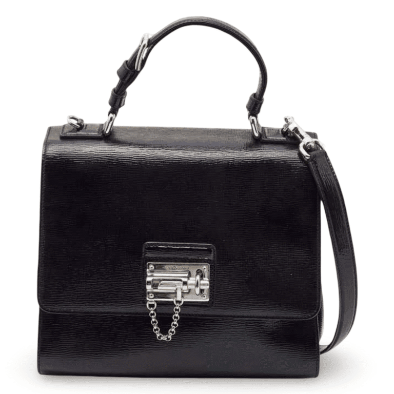 Dolce & Gabbana Black Textured Calfskin Leather Miss Monica Top Handle Bag