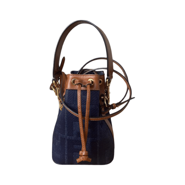 Fendi Mon Tresor Mini Bucket Bag – Blue Denim with Brown Leather Trim