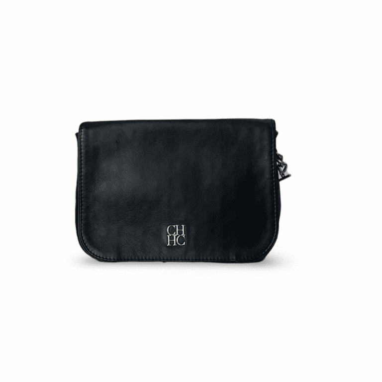 The CH Carolina Herrera Black Leather New Baltazar Flap Shoulder Bag is a chic and versatile accessory that combines luxury