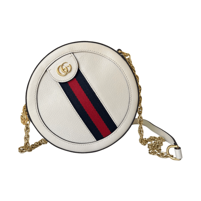 The Gucci Mini Ophidia Round Shoulder Bag is a charming and distinctive piece from the brand’s iconic Ophidia line. Crafted