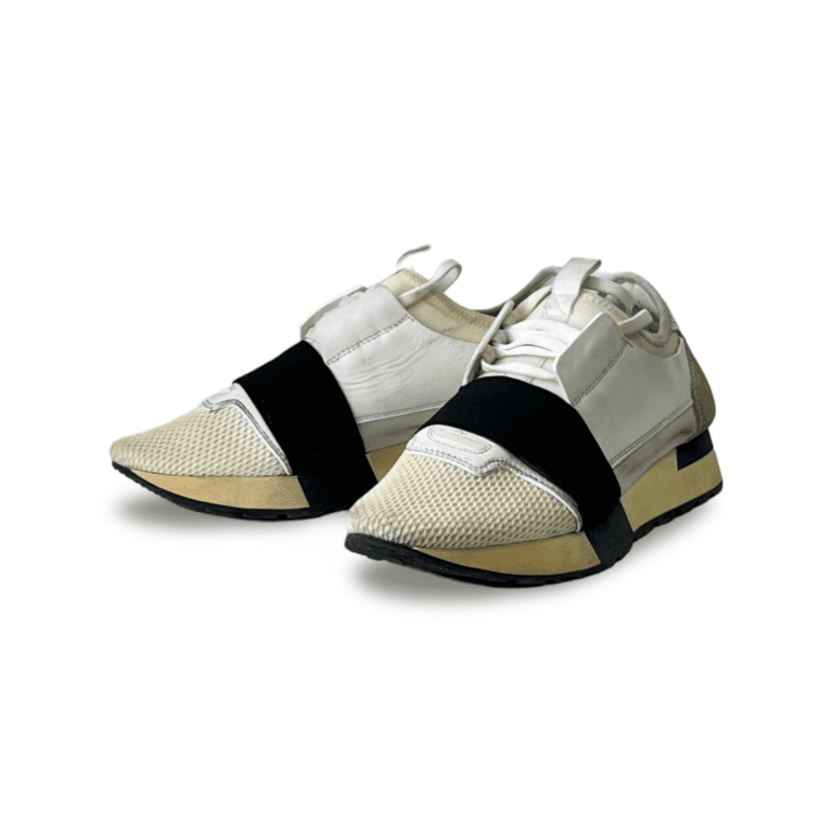 Balenciaga Off White Leather and Mesh Race Runner Sneakers