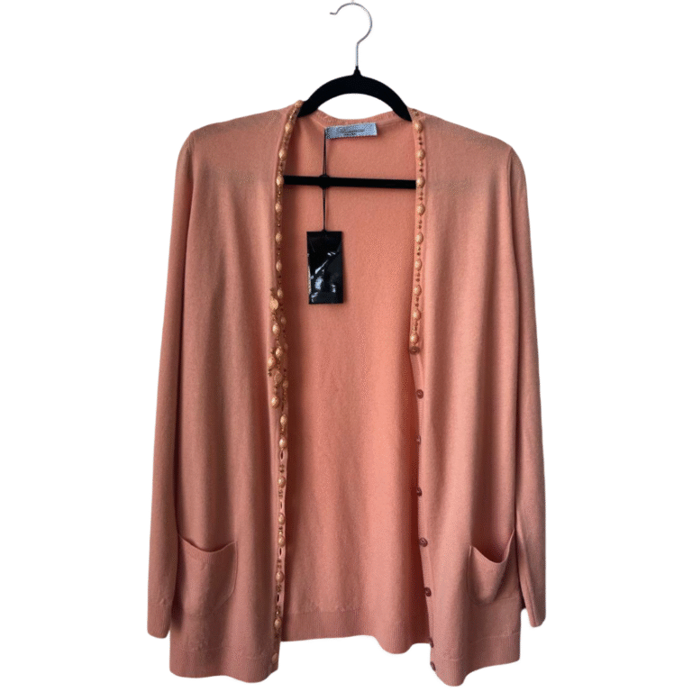 Blumarine Peach Beaded Embellished 100% Cashmere Cardigan – Size IT 42 / DE 36