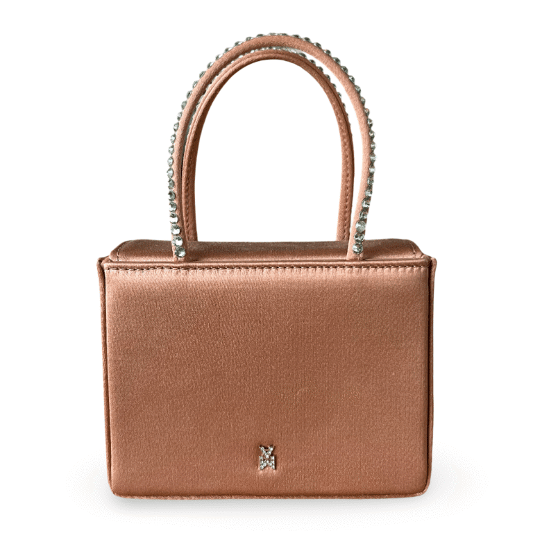 Amina Muaddi Mini Superamini Gilda Satin Nude Bag with Chrysolite Crystals