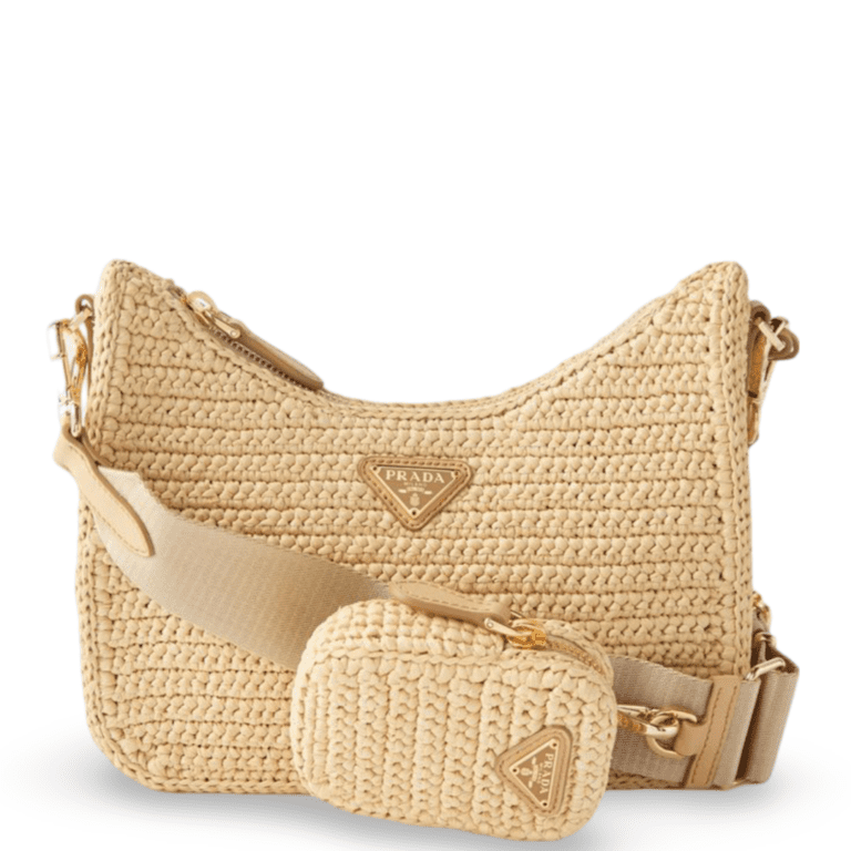 Prada Beige Raffia and Leather Re-Edition 2005 Shoulder Bag