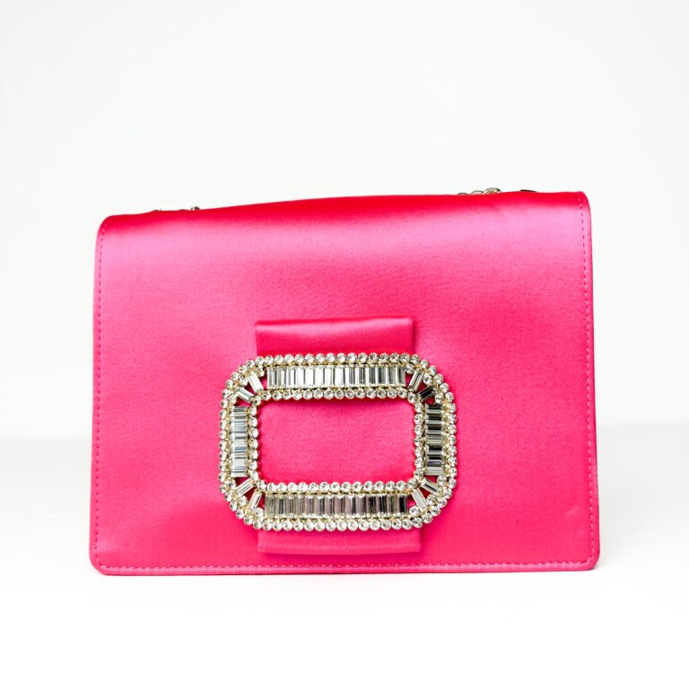Roger Vivier Dark Pink Satin with Crystal Buckle & Silver-Tone Chain Strap Evening Micro Bag