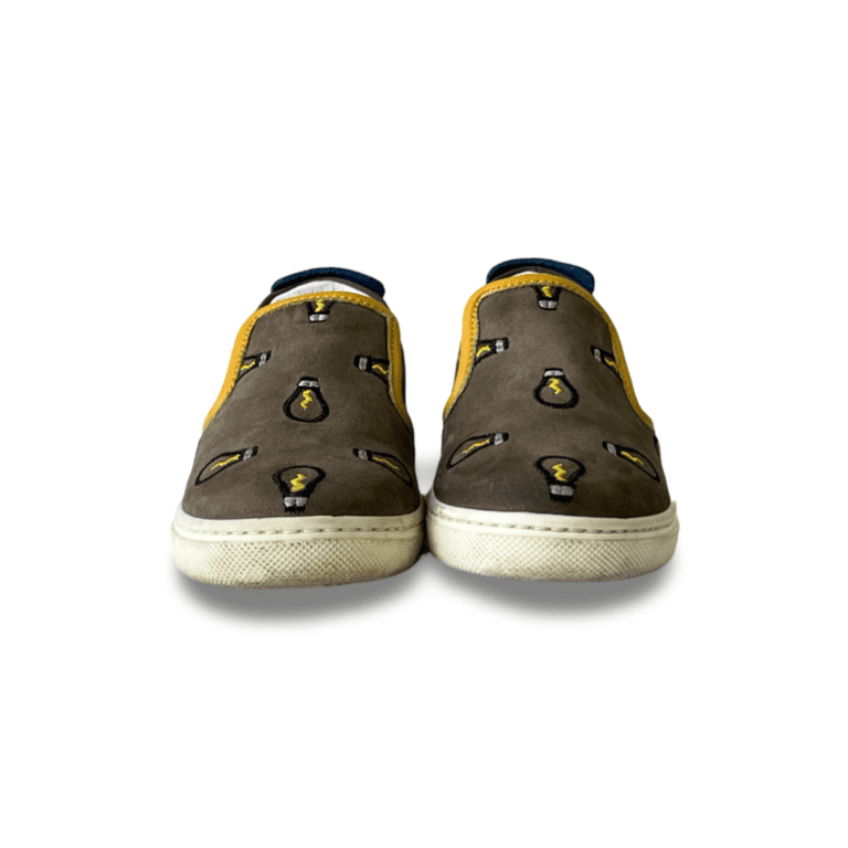 The Fendi Kids slip-on sneakers in size 25 are stylish and playful shoes designed for young ones. Featuring vibrant colors