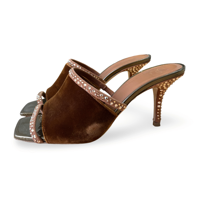 Malone Souliers Laney Crystal Square Toe Mules – Size 38.5