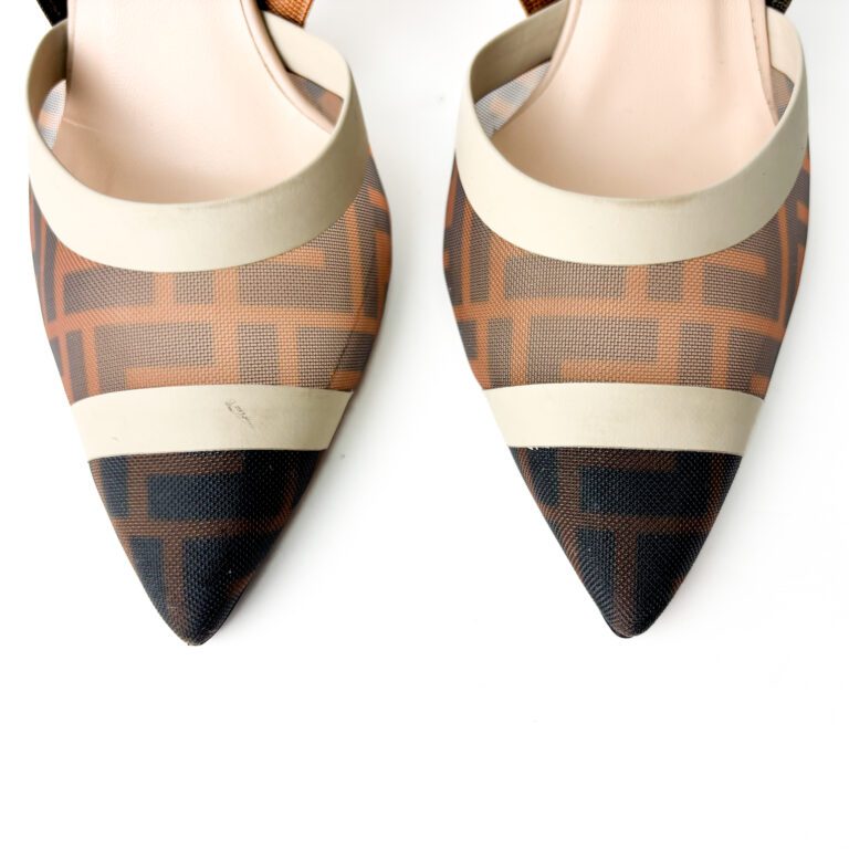 Fendi Brown FF Motif Mesh with Elasticated Straps Colibrì Slingback Pumps — Size 39
