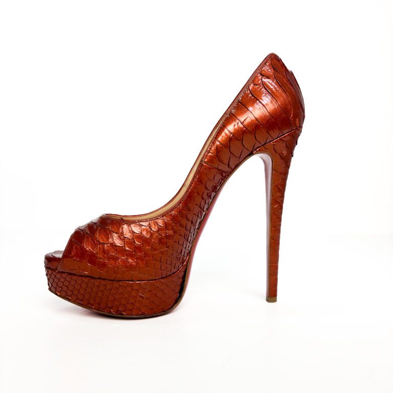 Christian Louboutin Dark Orange Python Leather Lady Peep Pumps – Size 39