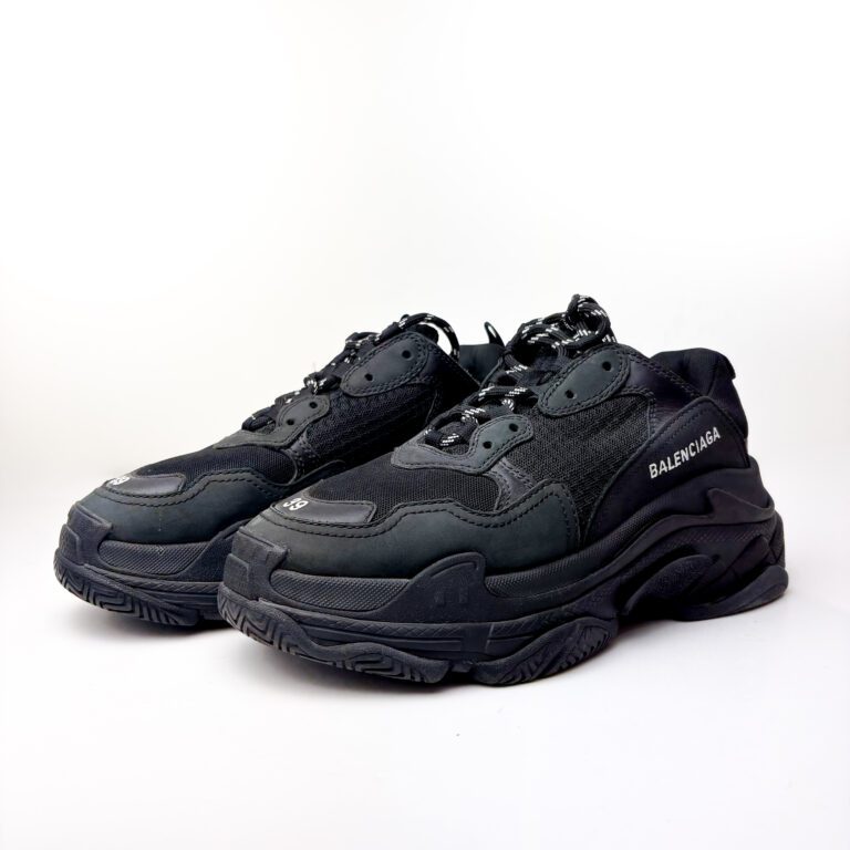 Balenciaga Triple S Sneakers in Black Leather and Mesh — Size 39