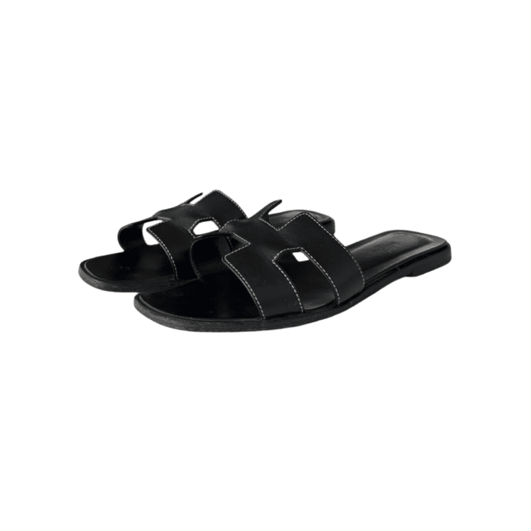 Hermès Black Calfskin Leather with White Topstitching Oran Sandals — Size 39