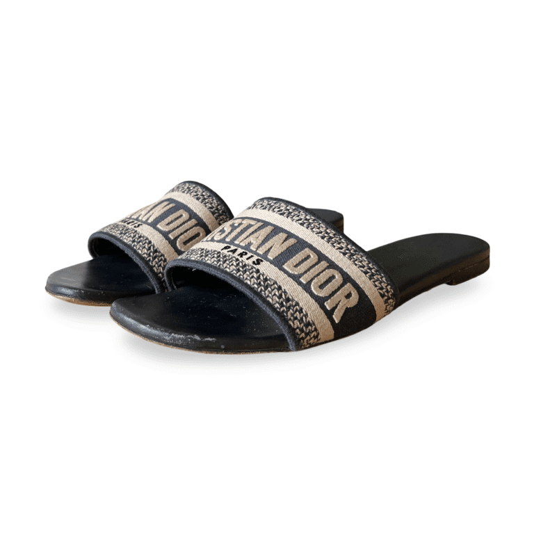 Dior J’Adior Black Leather with Embroidered Ribbon Strap Slingback Pumps — Size 39