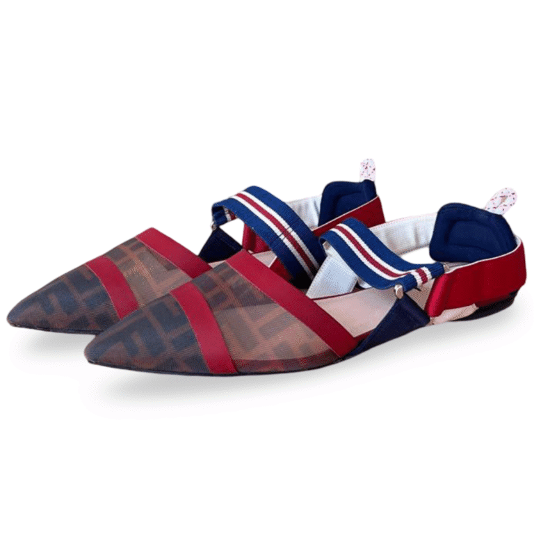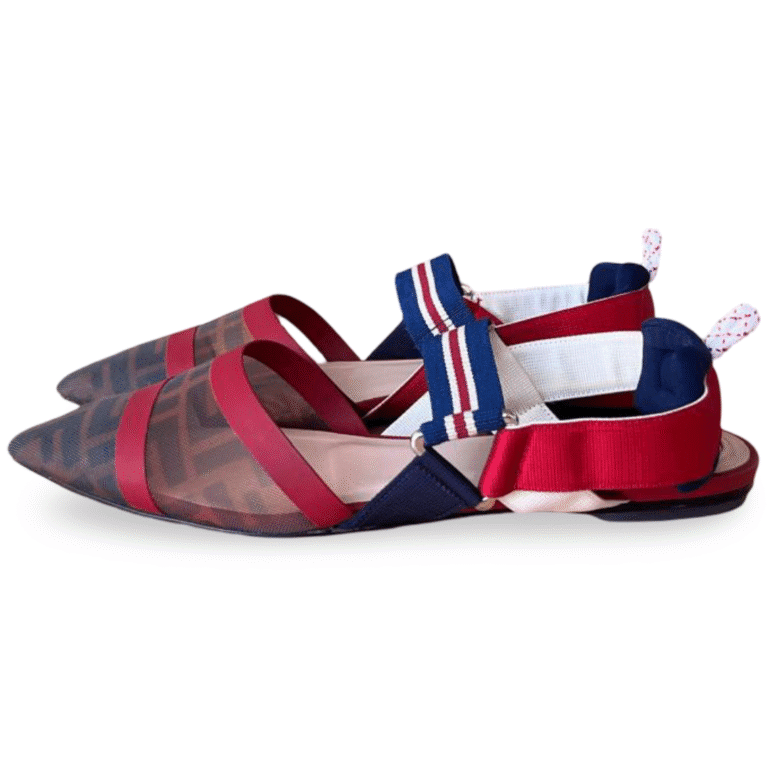 Fendi Multicolor Canvas & Mesh Colibri Slingback Flats – Size 39