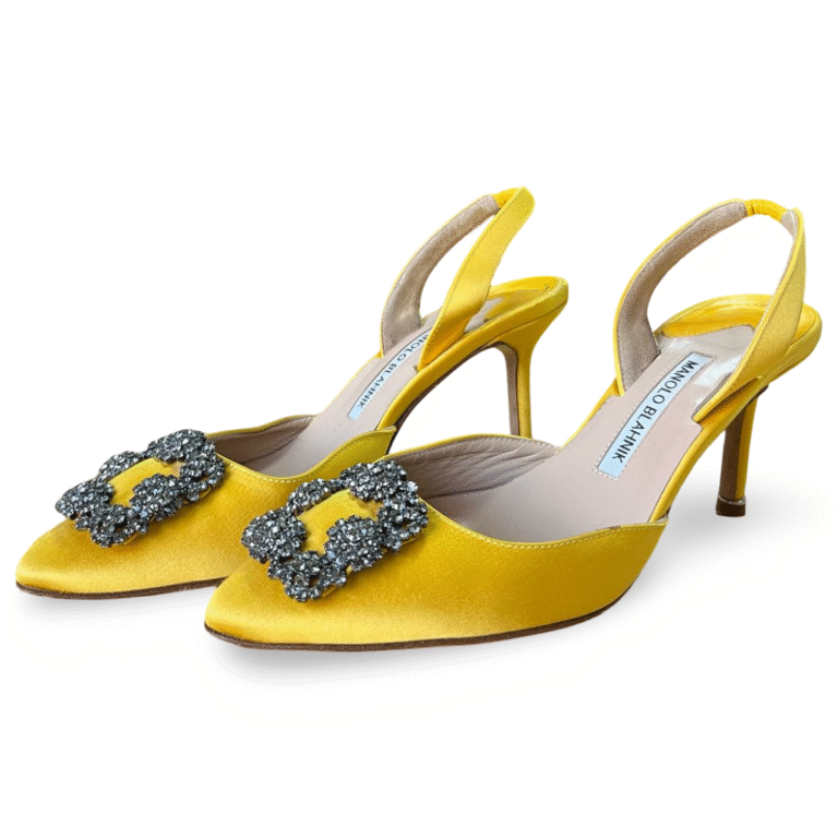 Manolo Blahnik Hangisli FMC Byel Satin Almond Toe Crystal Slingback Pumps – Size 38.5