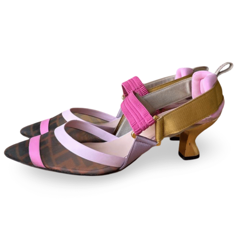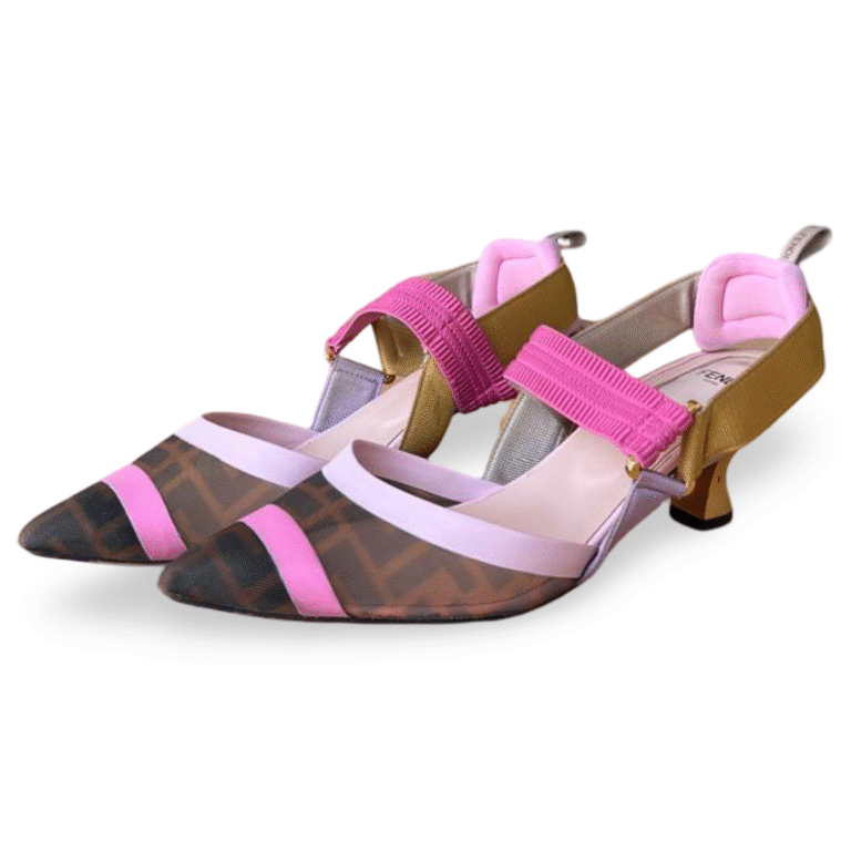 Fendi Multicolor Mesh and Canvas Colibri Slingback Pumps – Size 38