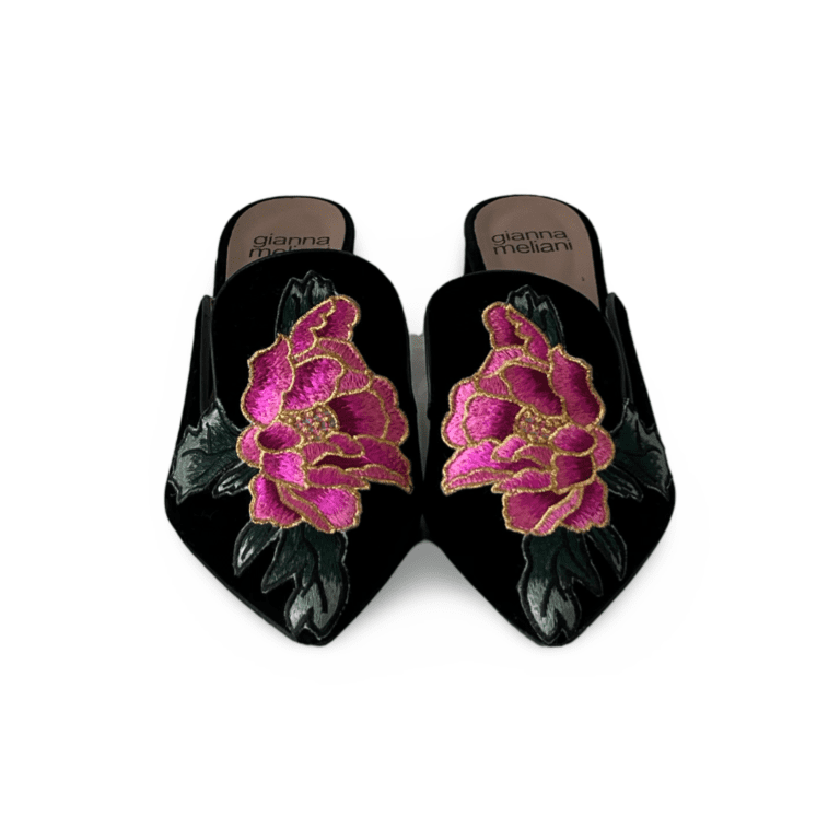 Gianna Meliani backless pointed slip-on loafers embroidery mules slipper shoes (Size 38)