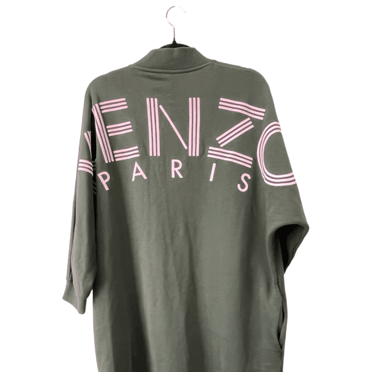 Pre-Loved Kenzo Dark Green Logo Print Cotton V-Neck Sweatshirt – Size M