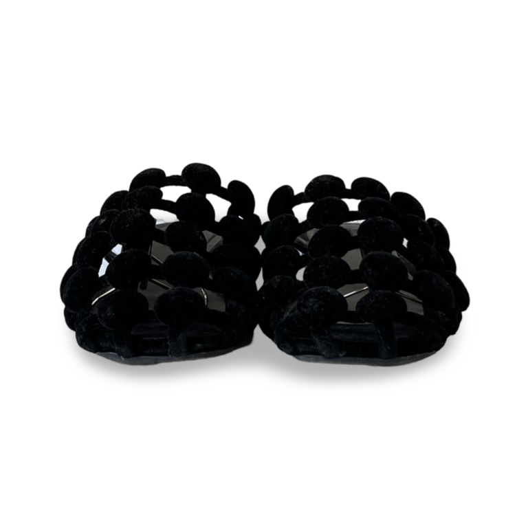 Alexander Wang Black Velvet Leather Amelia Cage Flat Slides Size 37
