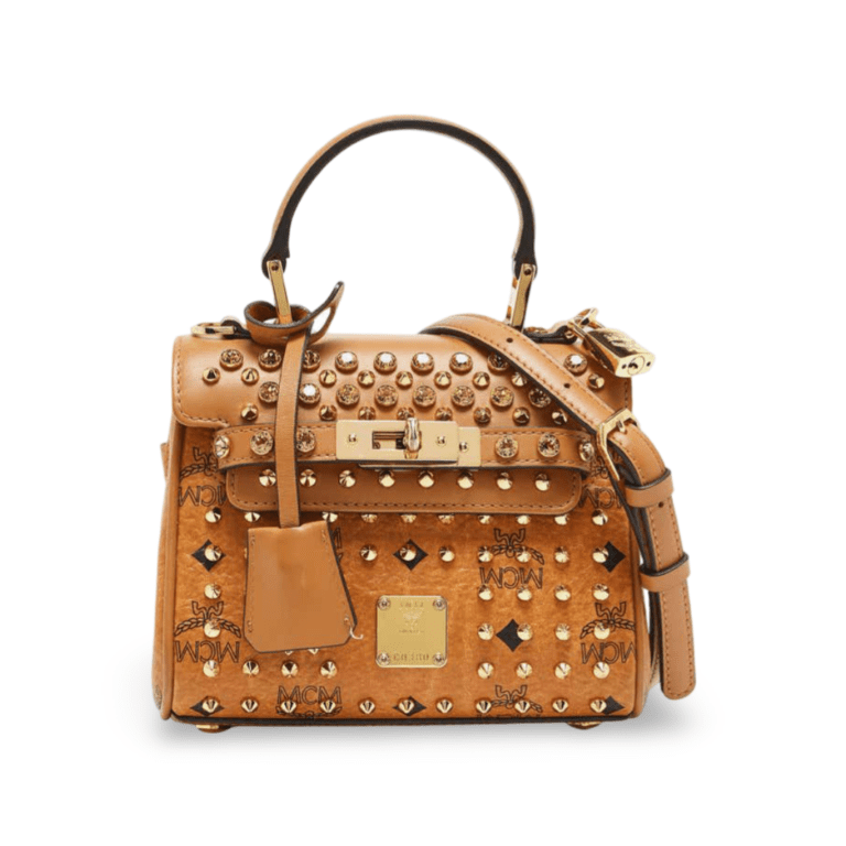 MCM Cognac Visetos Coated Canvas and Leather Mini Heritage Top Handle Bag