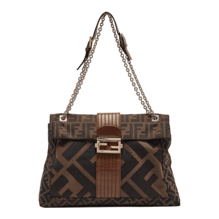 Fendi Tobacco Zucca Canvas and Leather Maxi Baguette Shoulder Bag