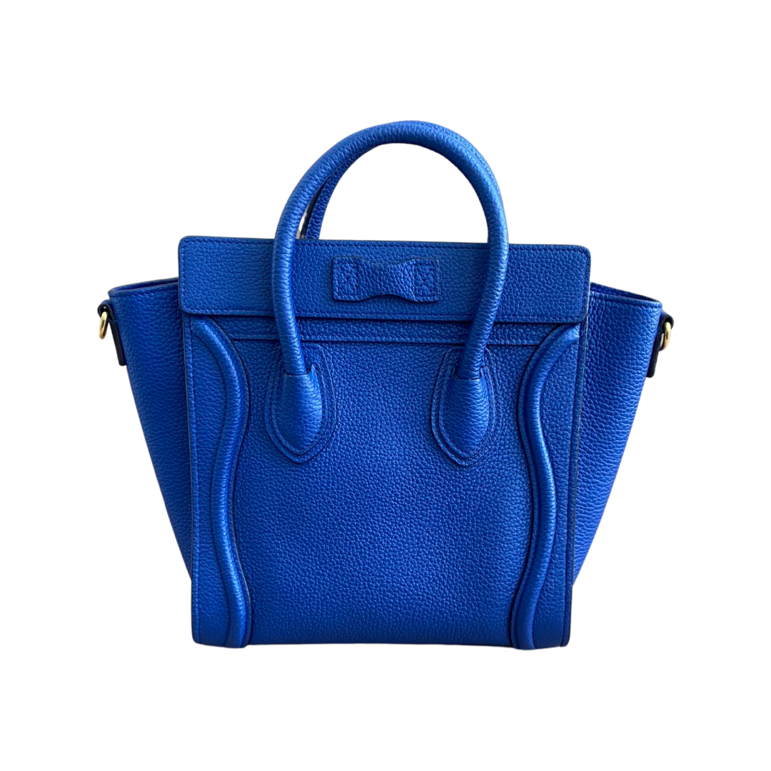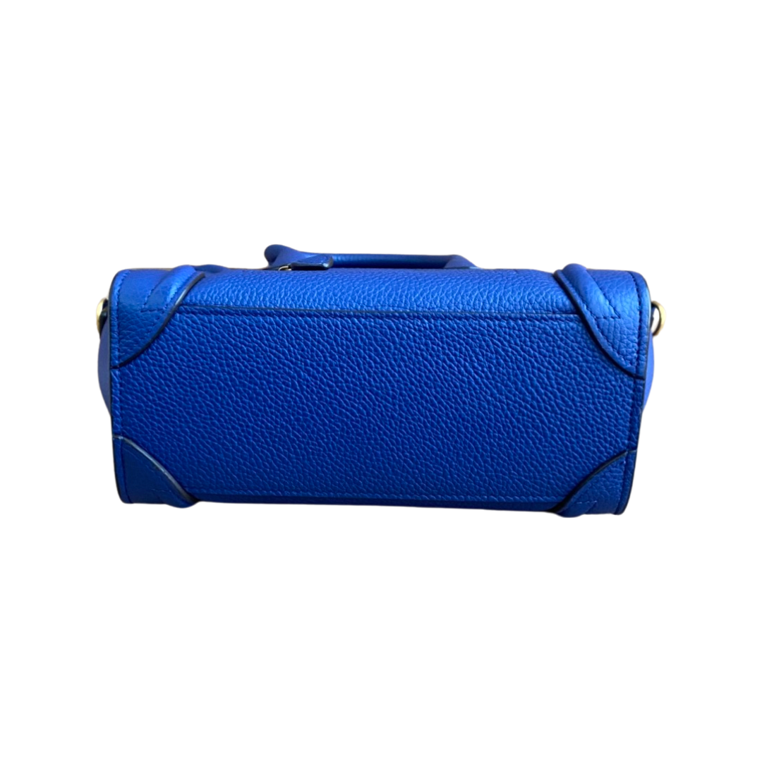 The Celine Blue Leather Nano Top Handle Bag is a chic and compact accessory that exudes elegance. Made from high-quality blue leather and featuring gold hardware, this mini top handle bag is perfect for adding a pop of color to any outfit. The bag comes with a strap for added convenience, making it versatile for both hand-held and crossbody wear.