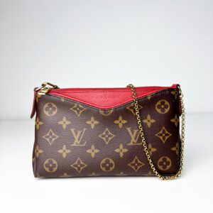 This Celine Two Tone Red Pleated Clutch is a stunning and versatile accessory, combining bold colors and a sophisticated pleated design. Perfect for an elegant evening out or adding a pop of color to any outfit, this clutch exudes timeless luxury with a modern touch.
