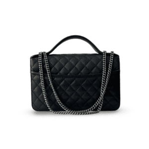 This Chanel Quilted Double Zip Small Vanity Case is crafted from luxurious quilted leather, featuring the classic double zip compartments for organized storage. It’s detailed with the iconic CC logo and comes with a leather-interwoven chain strap and a top handle for versatile styling.