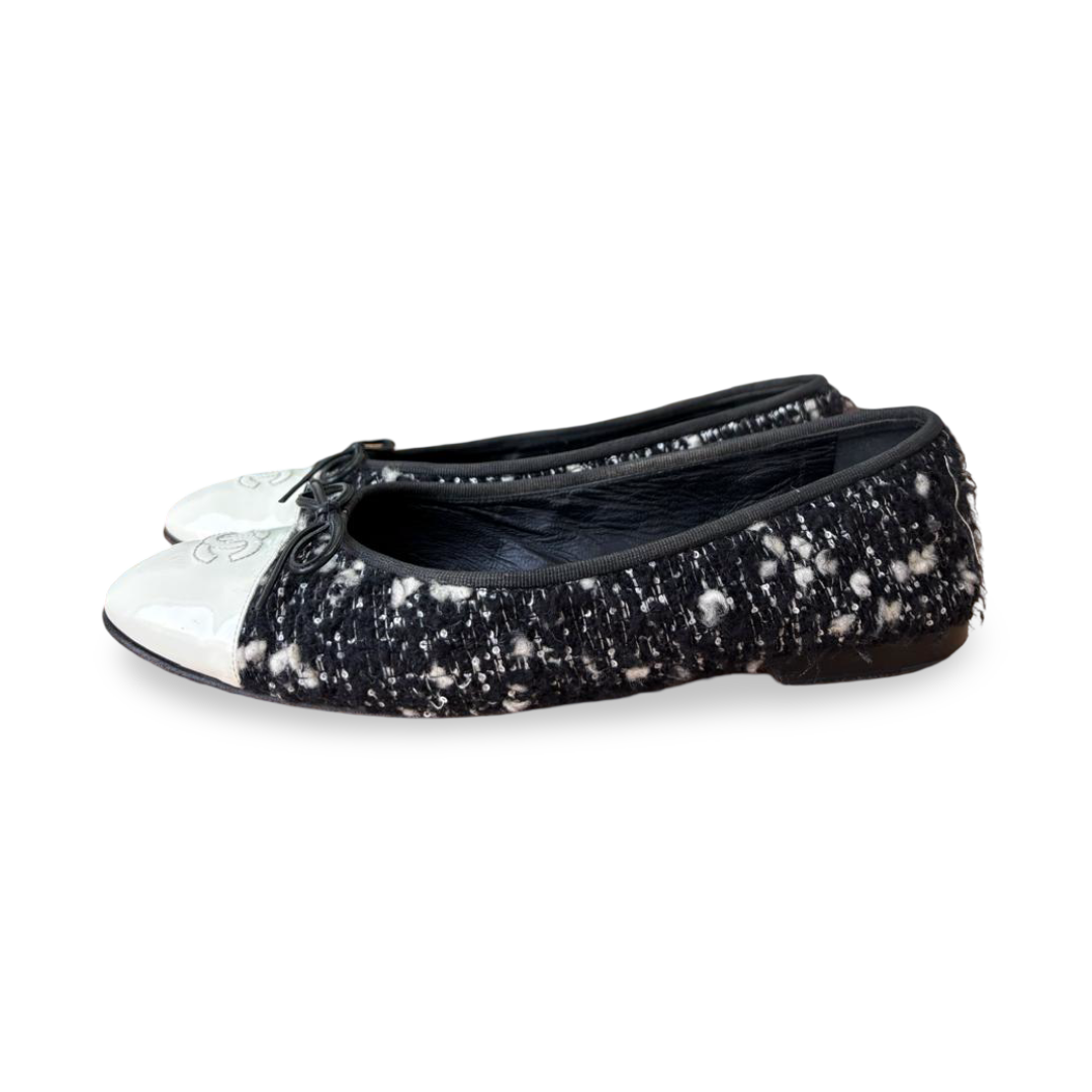 Chanel Tweed CC Ballet Flats – Size 41 C