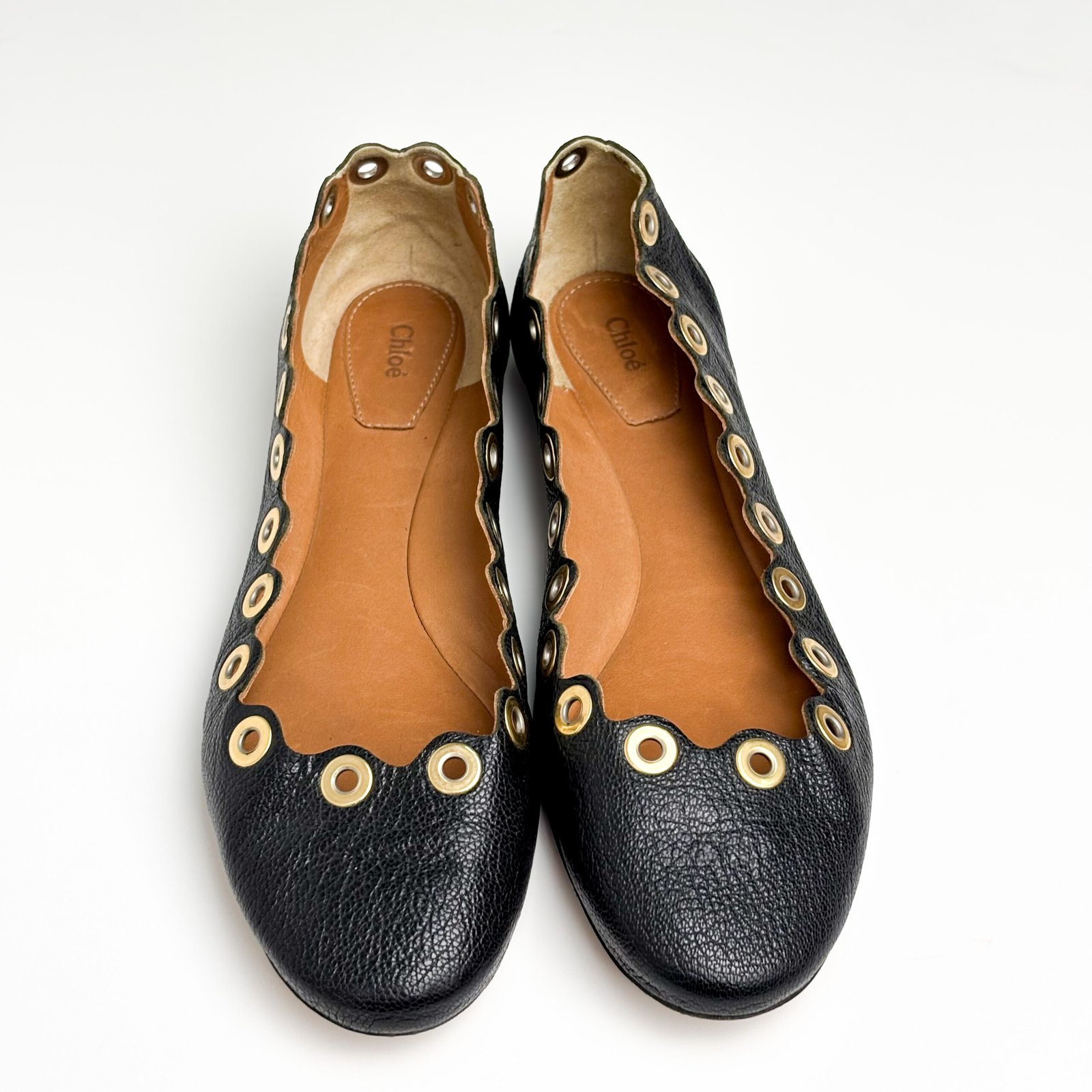 Chloe Black Leather Lauren Ballet Flats Size 36.5