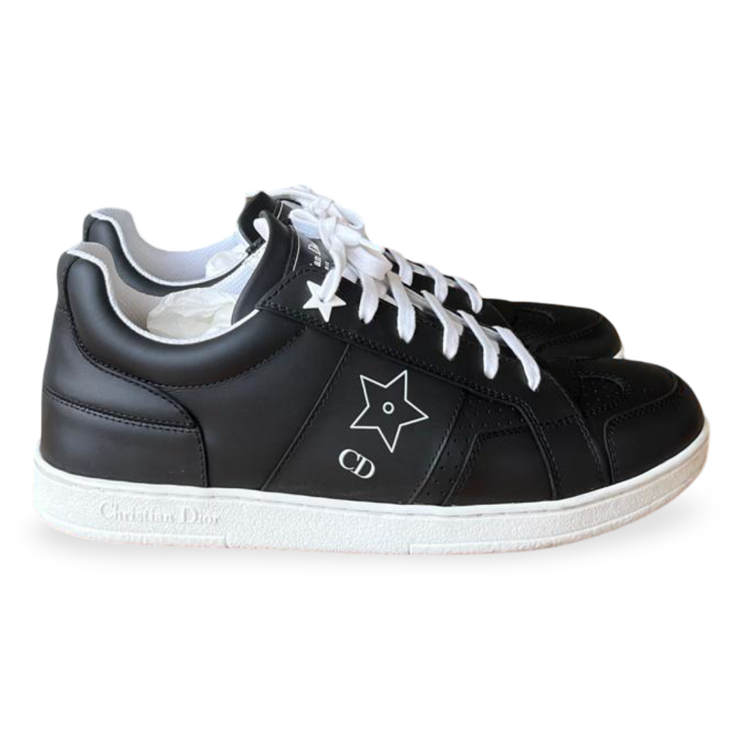 Crafted from premium black leather, the Christian Dior Star Low Top Sneaker features the brand’s signature star motif on the tongue and minimalist branding details. A sleek, casual design perfect for everyday wear, finished with a comfortable rubber sole.
