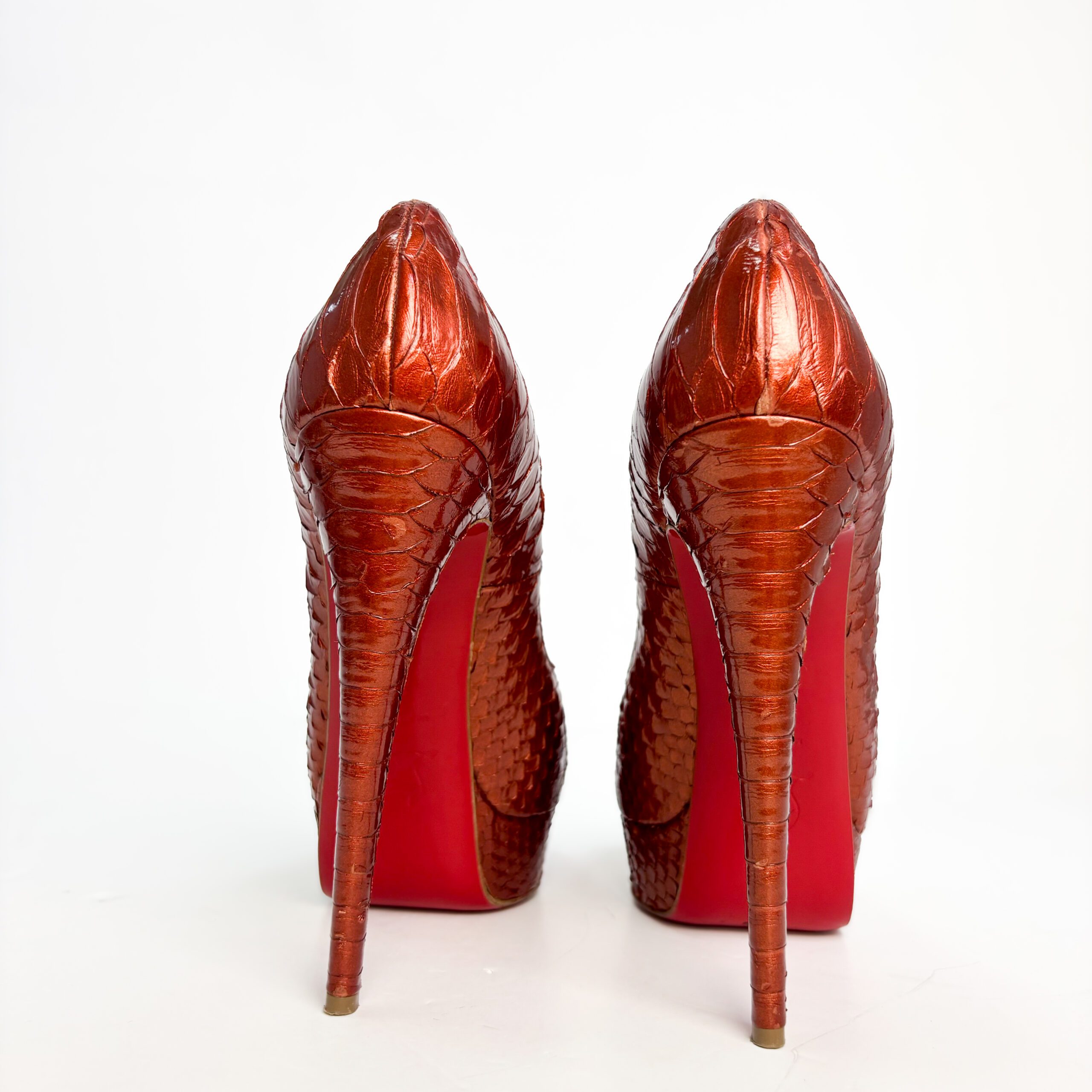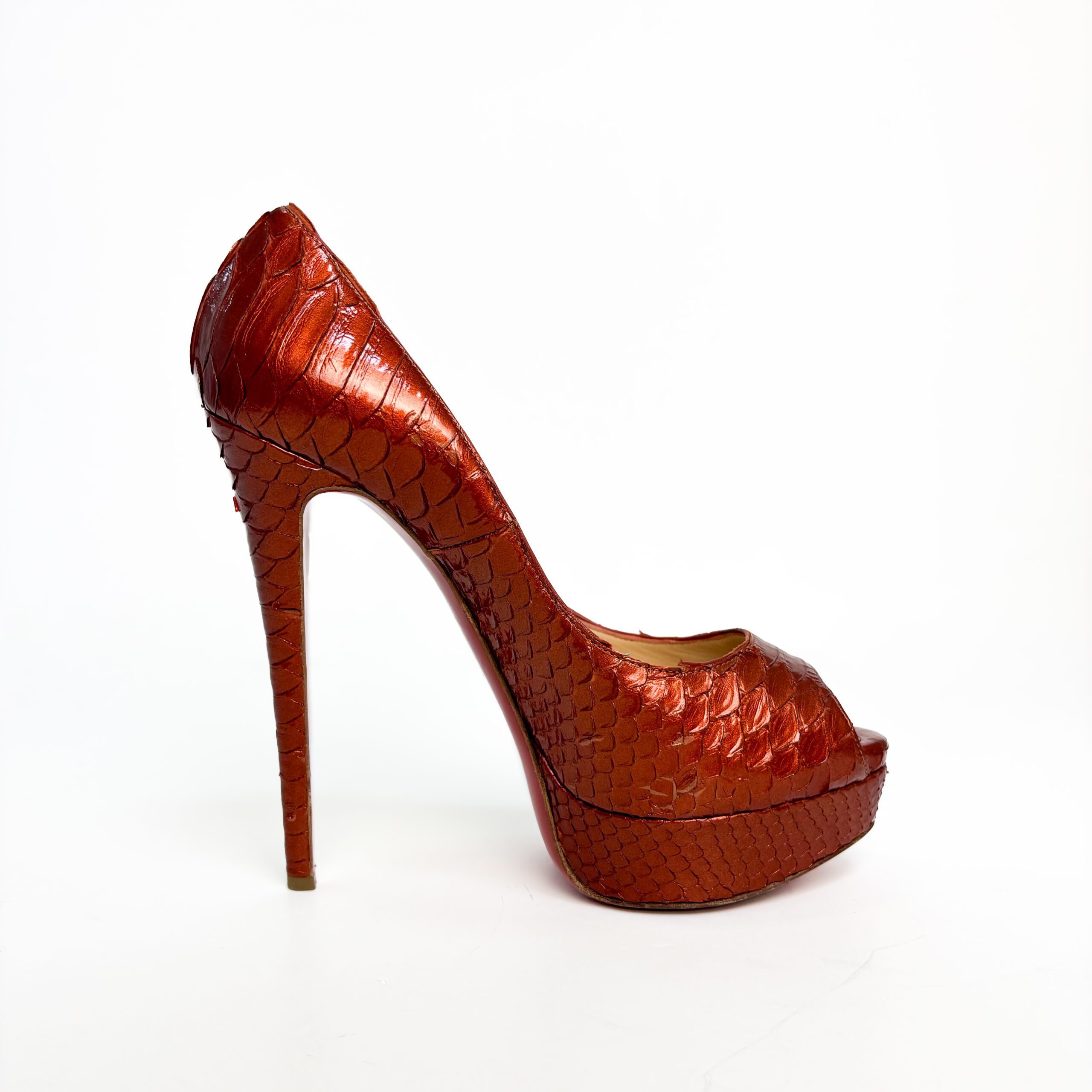 Christian Louboutin Dark Orange Python Leather Lady Peep Pumps β Size 39