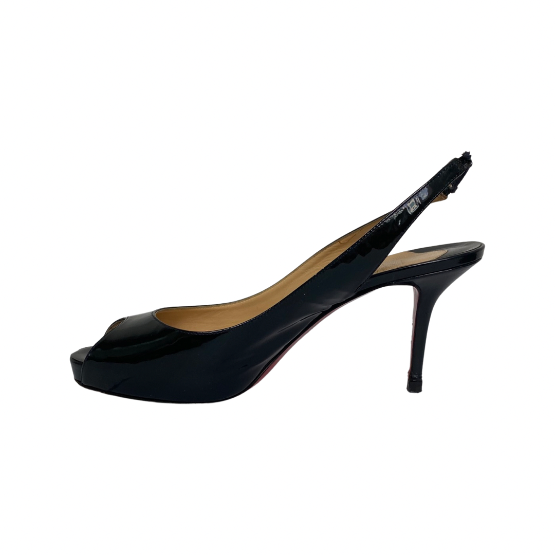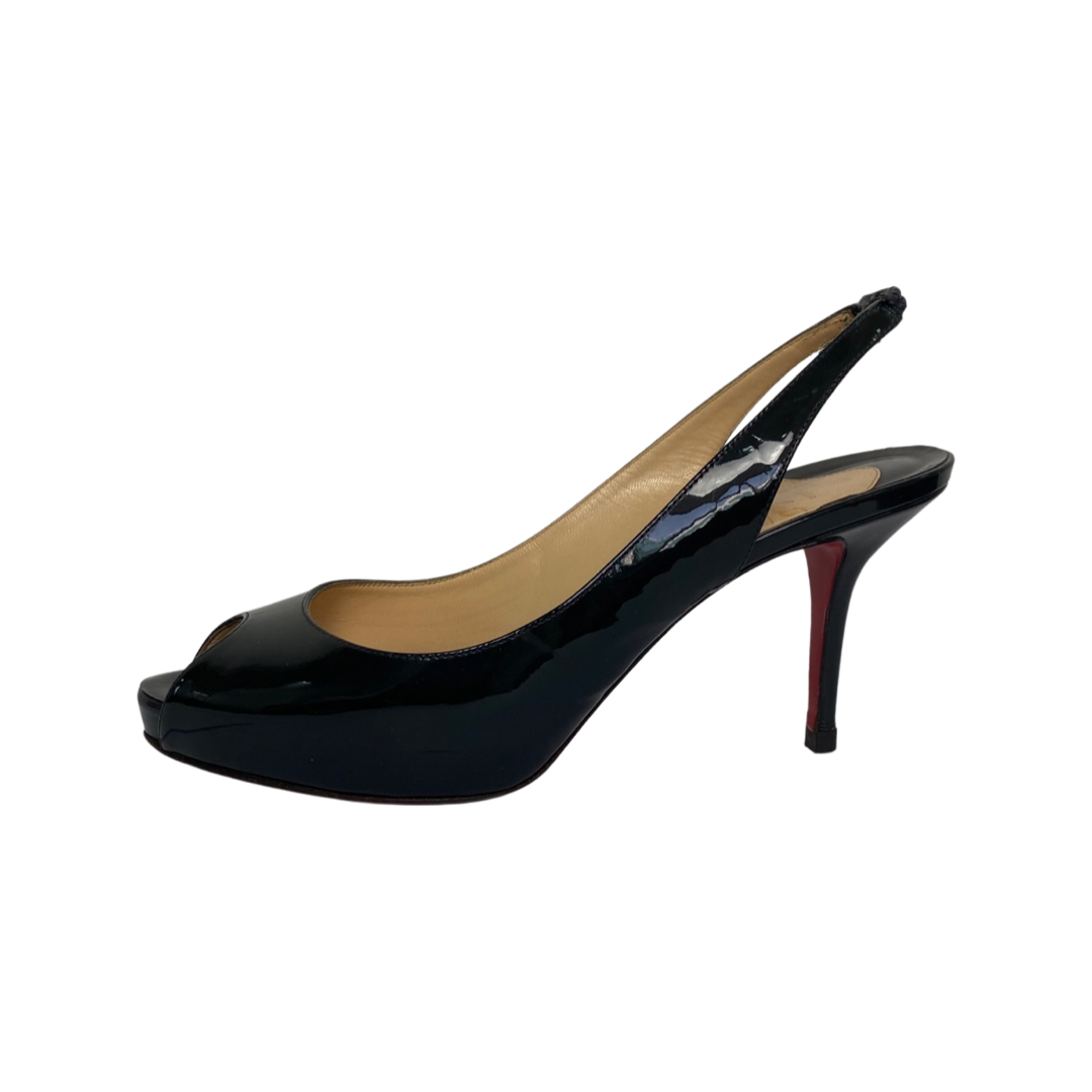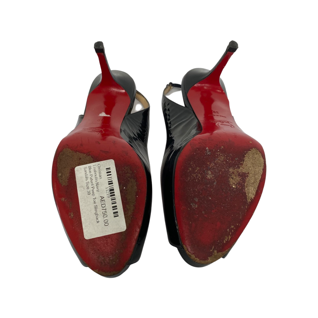Christian Louboutin Navy Blue Patent Peep Toe Slingback Sandals Size 39