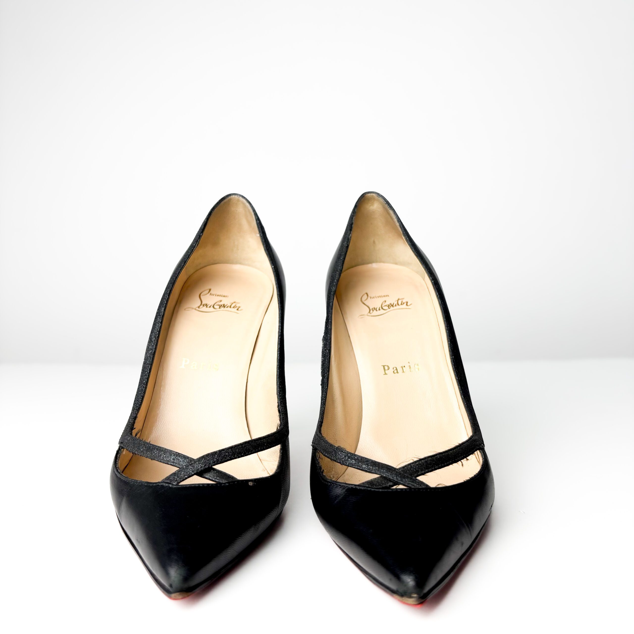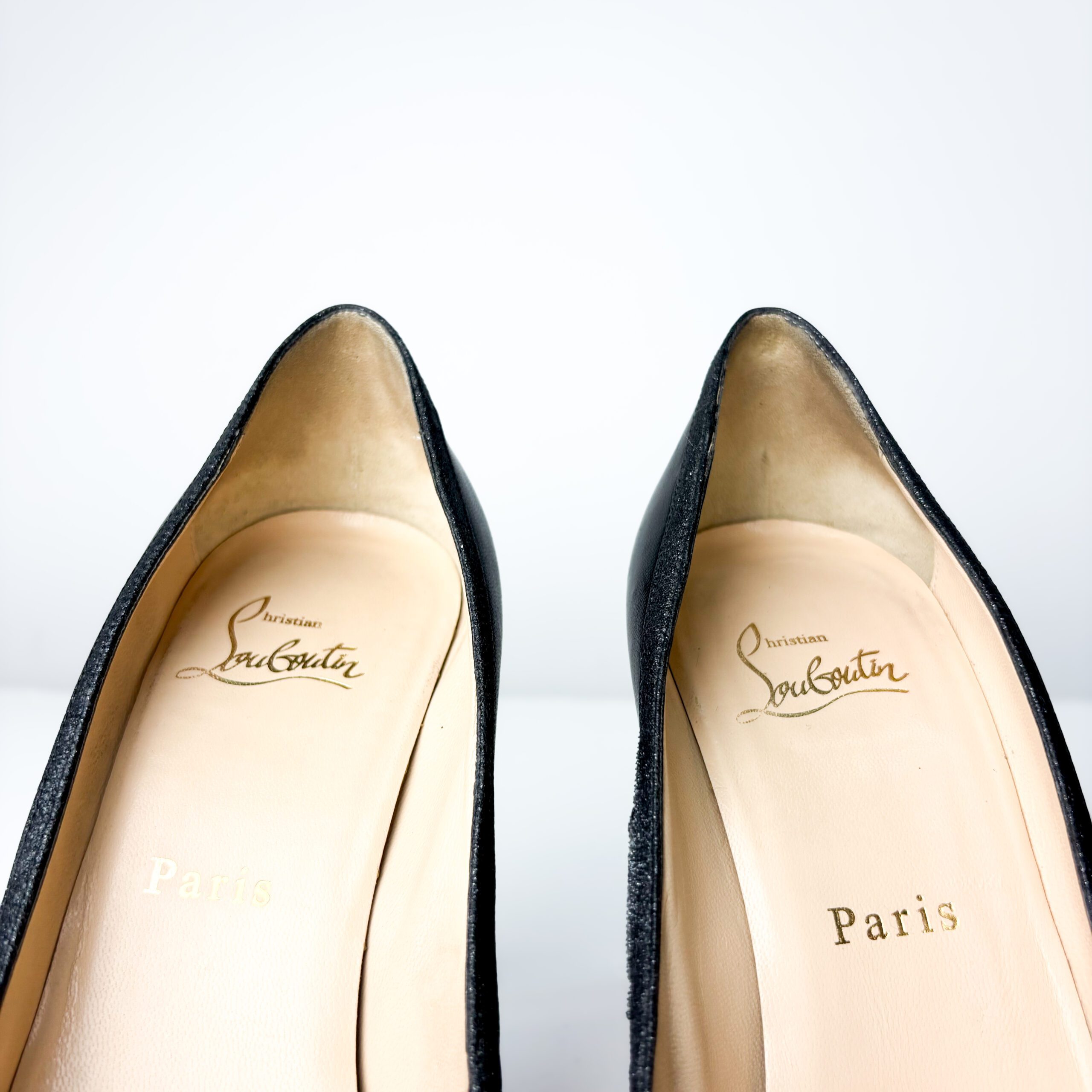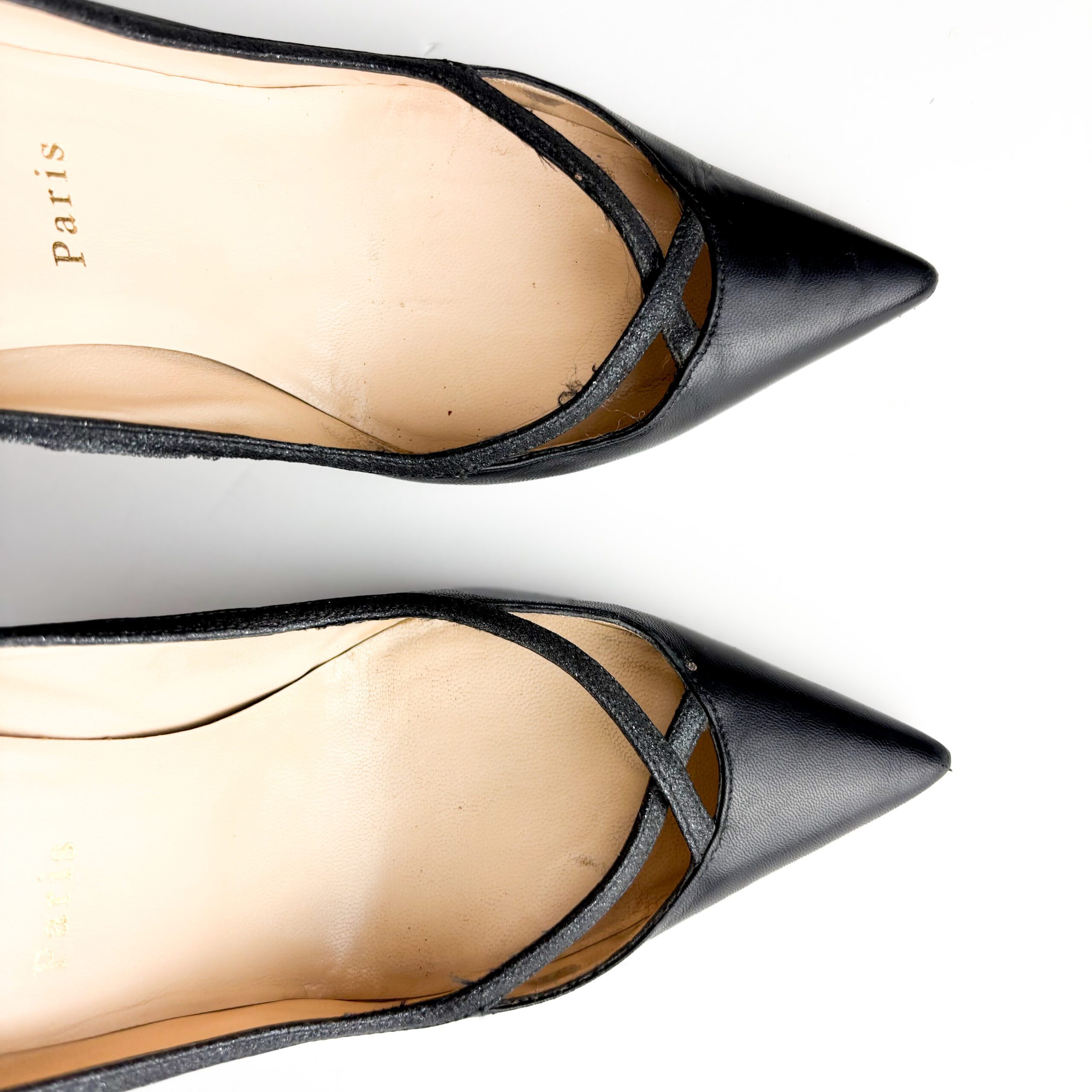 Christian Louboutin Princess Leather & Glitter Pumps — Size 38.5