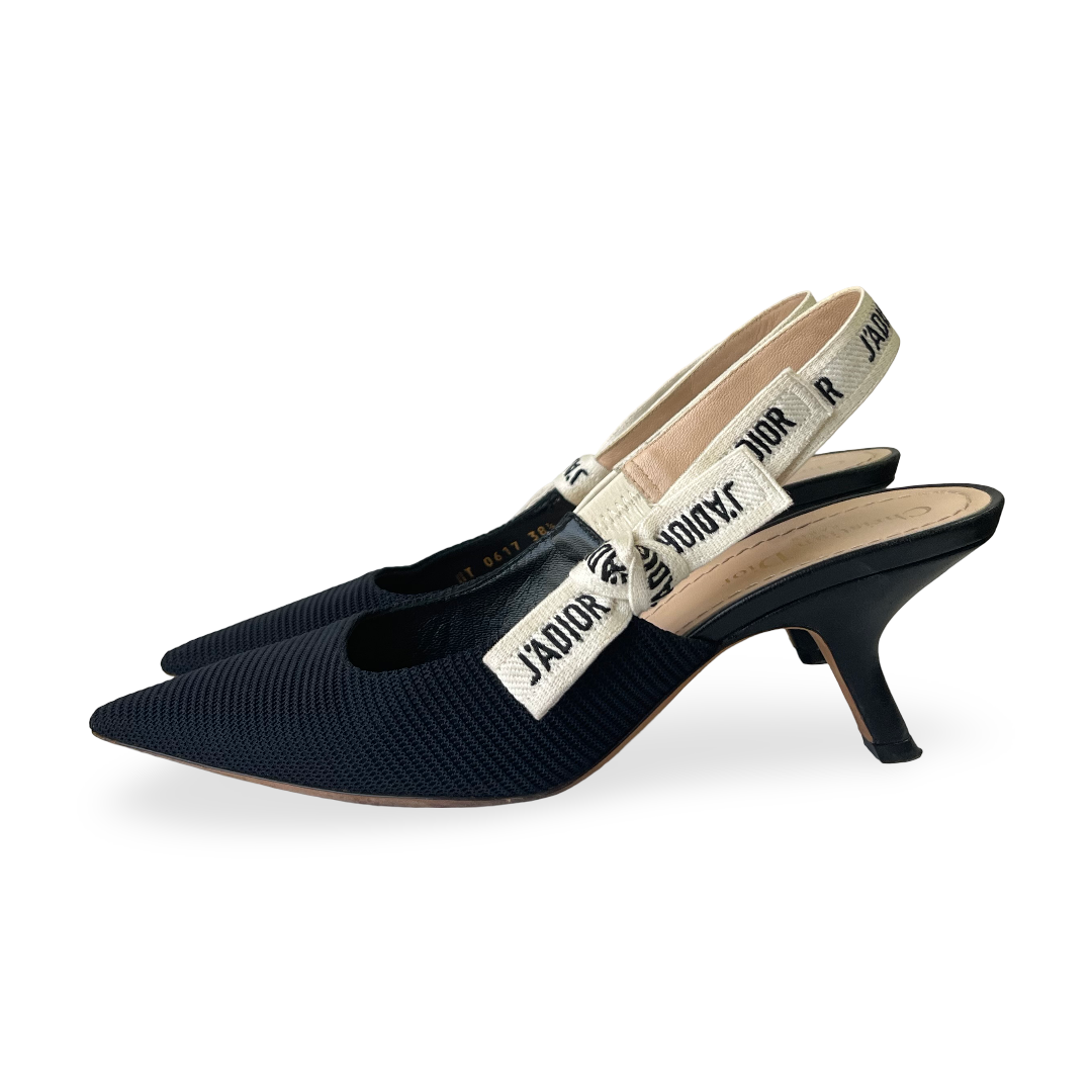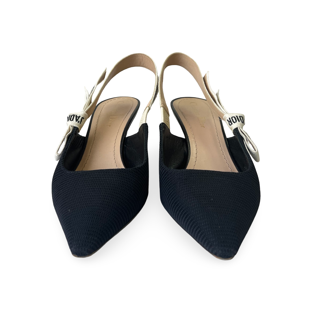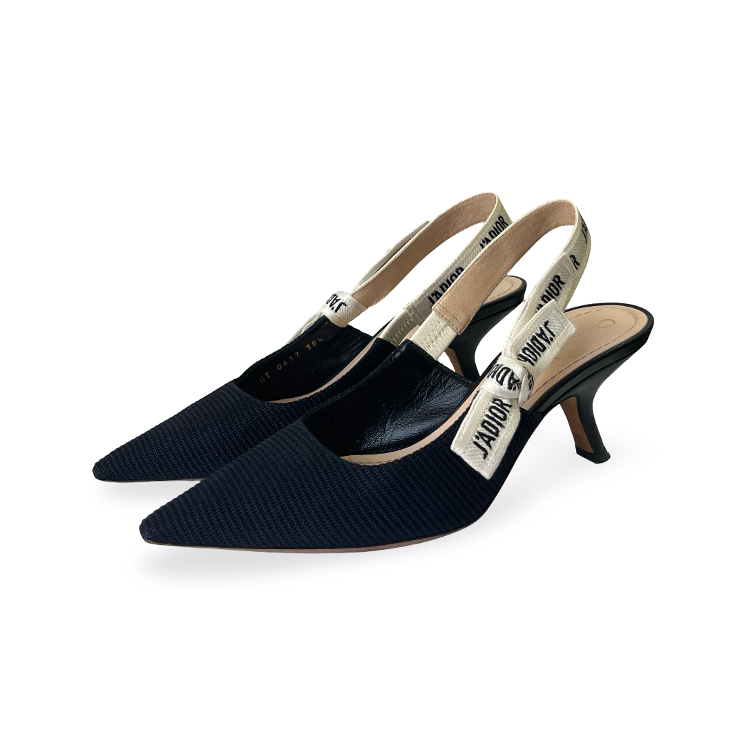 Dior Black Technical Canvas J’Adior Slingback Pumps Size 38.5