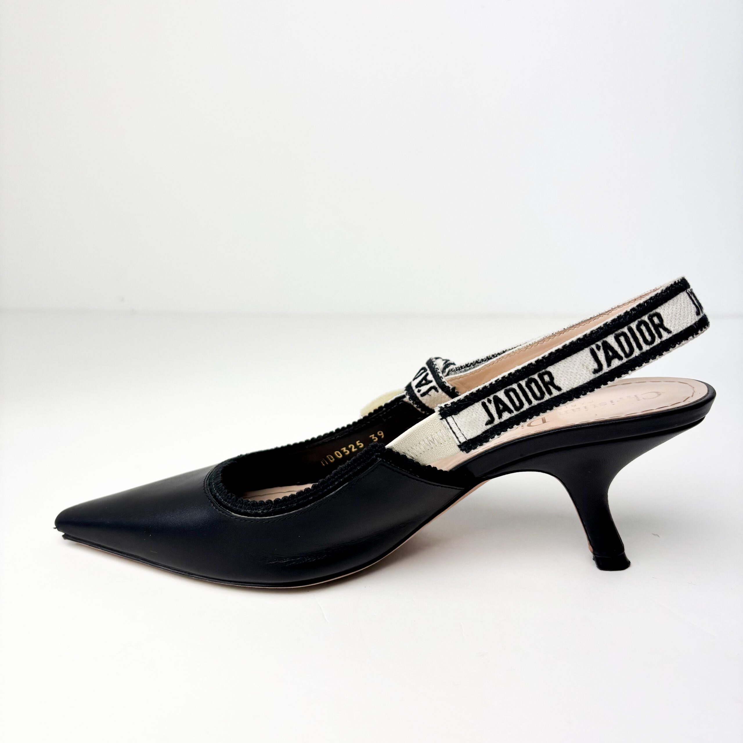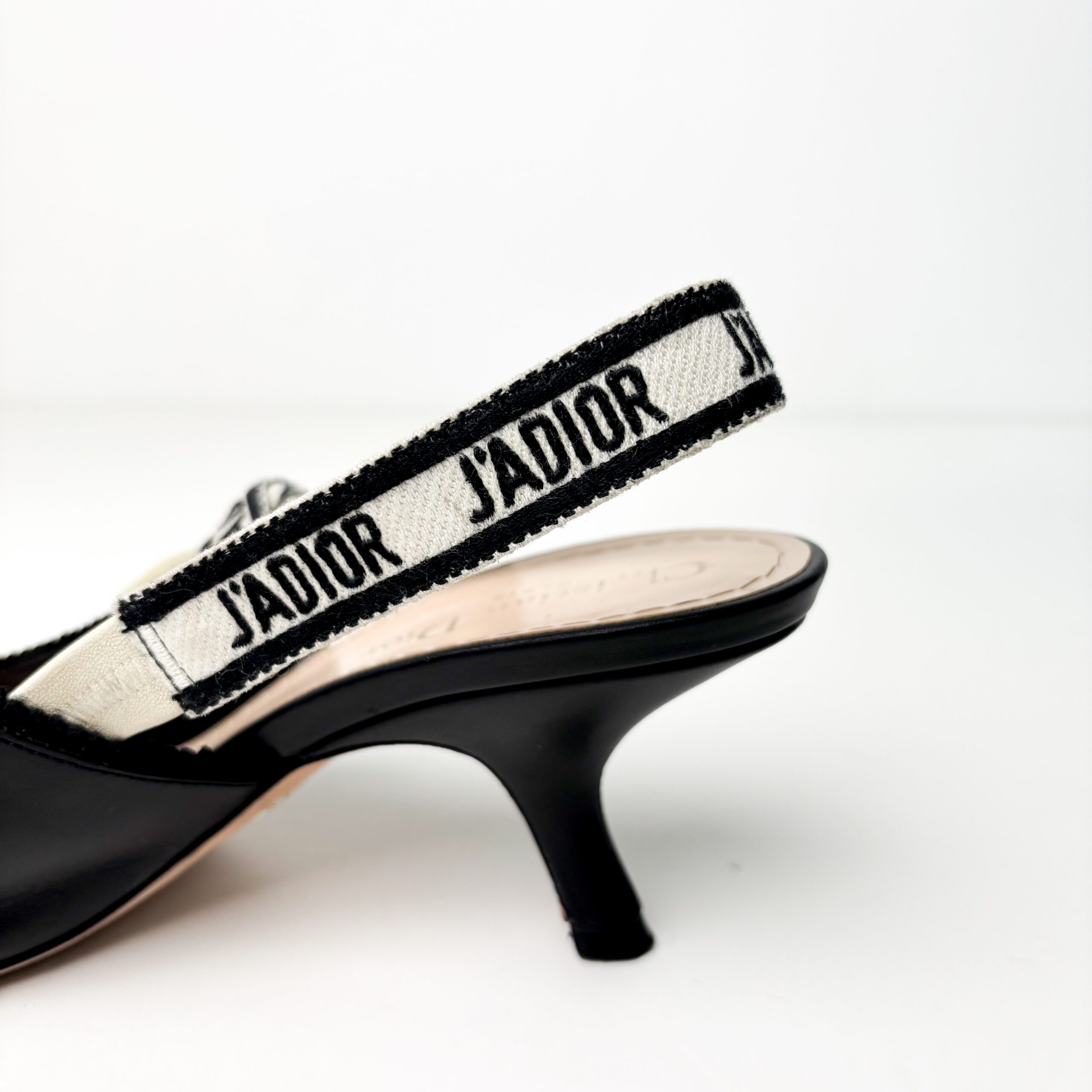 - Heel: Iconic Dior comma-shaped heel