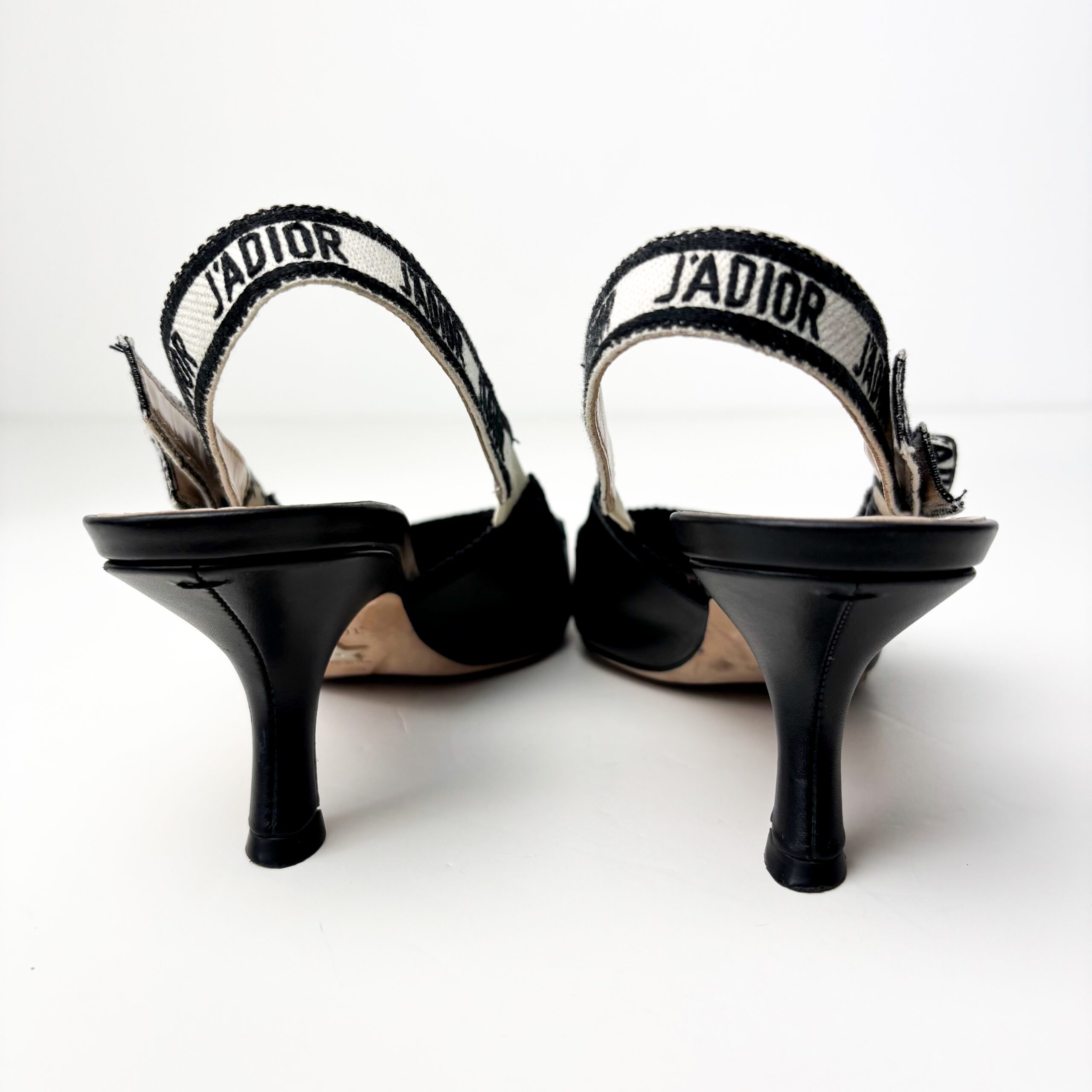 Dior J’Adior Black Leather with Embroidered Ribbon Strap Slingback Pumps — Size 39
