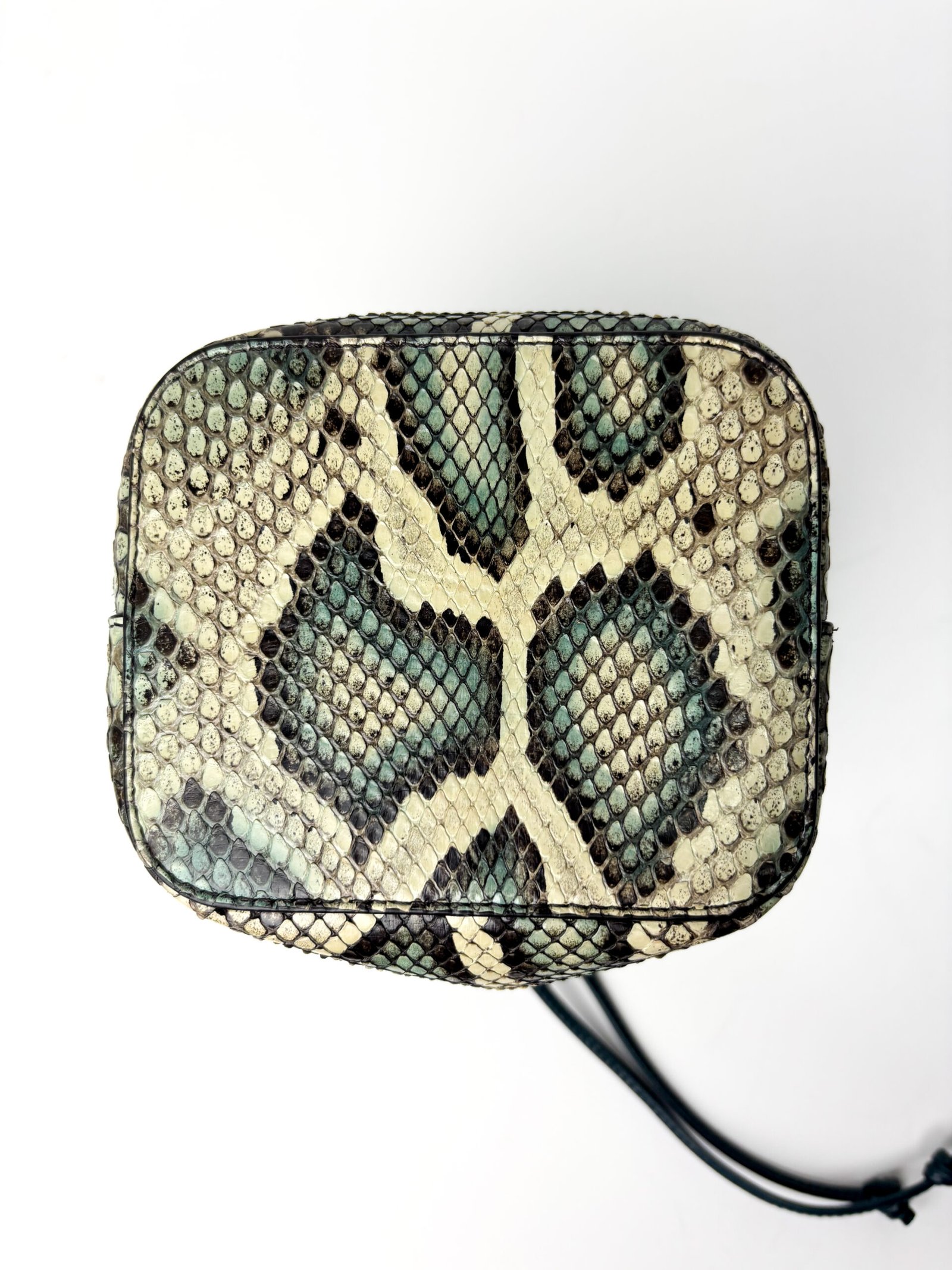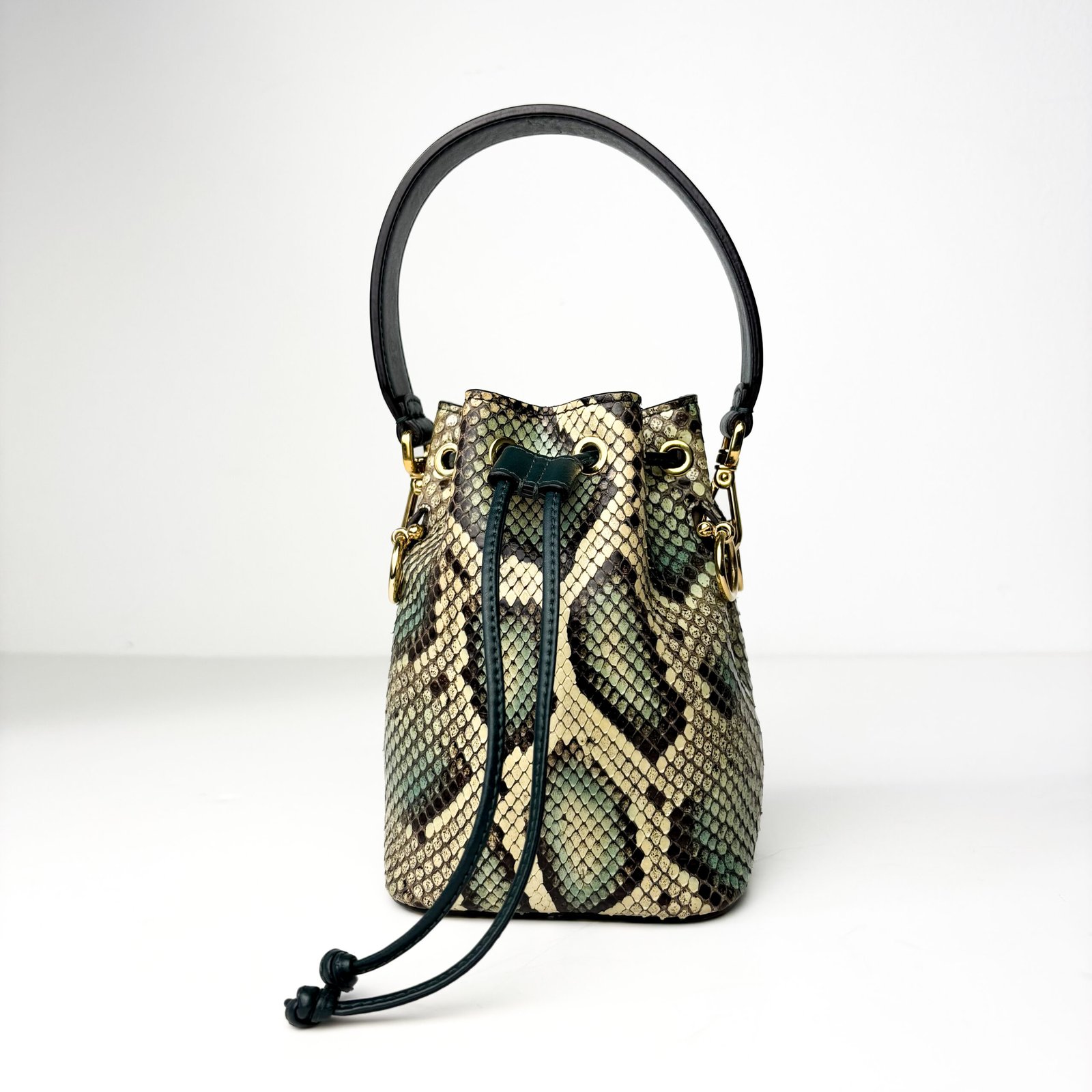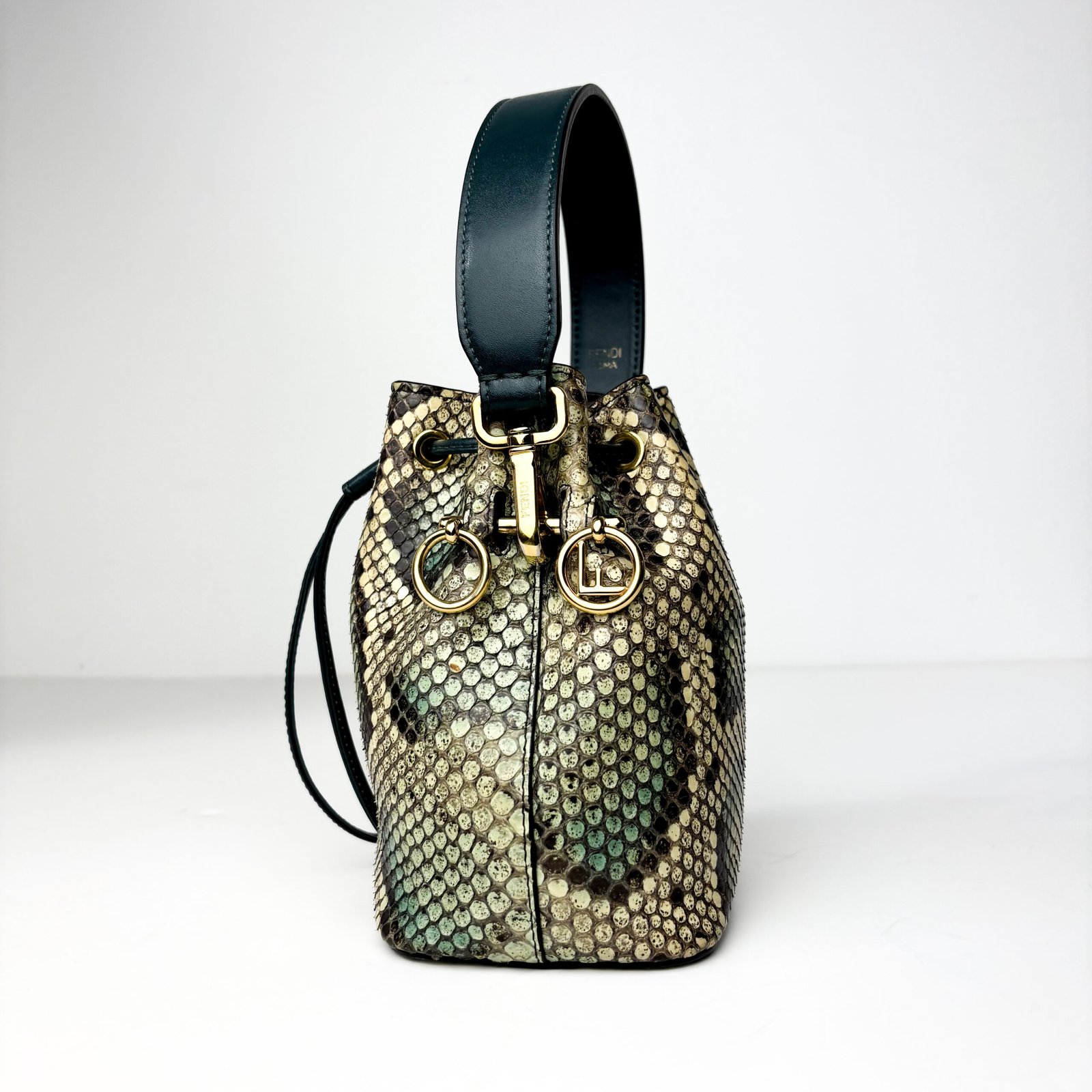 Fendi Mon Python-Embossed Leather in Cream, Charcoal & Mint Trésor Mini Bucket Bag