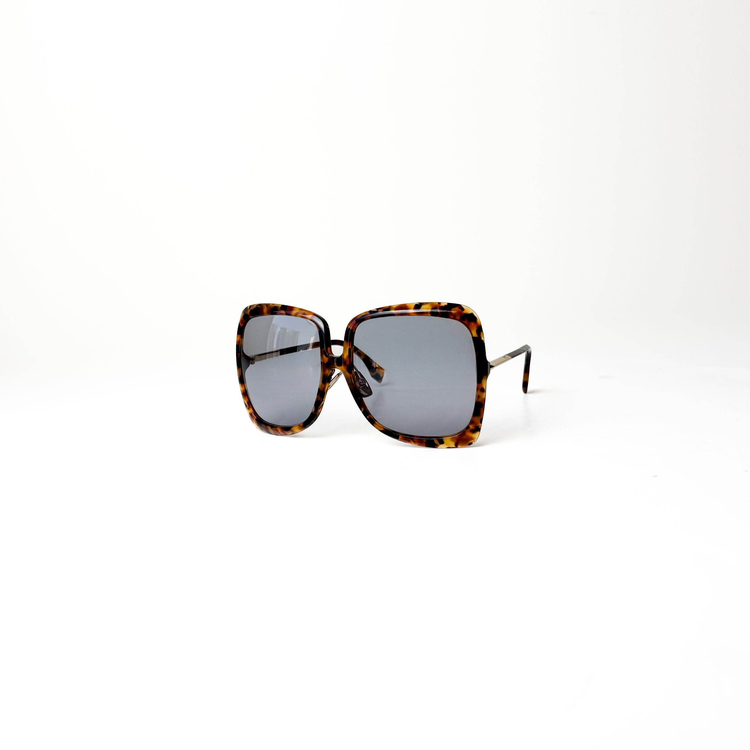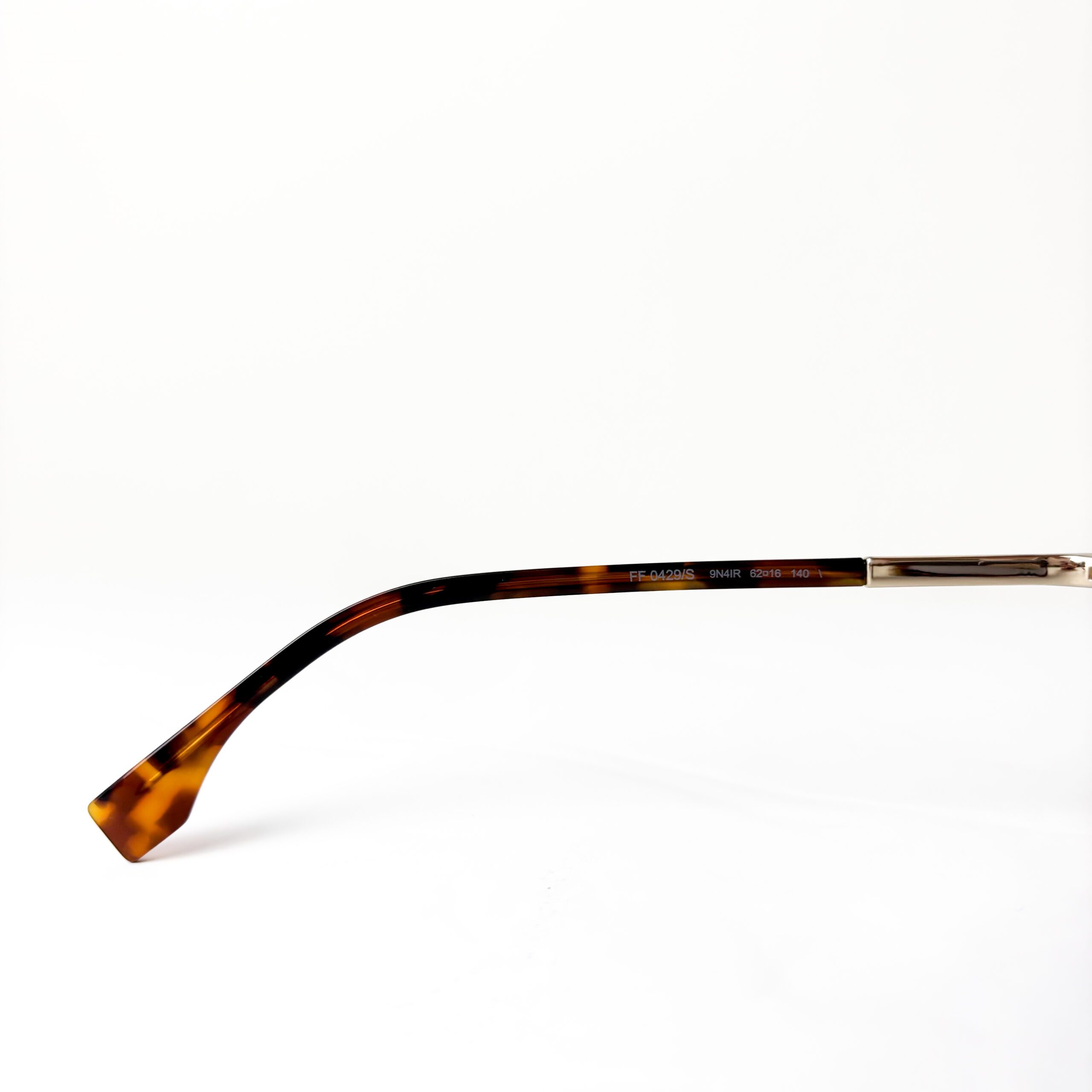 - Condition Summary (Pre-Owned): Excellent, like-new pre-owned condition. The oversized tortoiseshell acetate frame retains a high-gloss finish with no visible scuffs, chips, or dulling. The lenses are clear and free of deep scratches or impact marks, with only light reflections from overhead lighting. The internal metal branding and temple markings remain sharp and unworn. Includes original Fendi box and branded microfiber cloth, indicating careful storage.