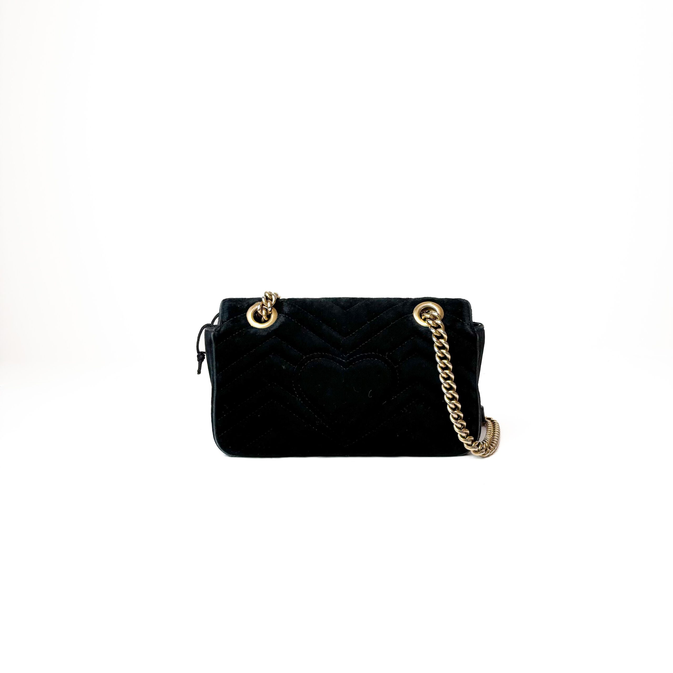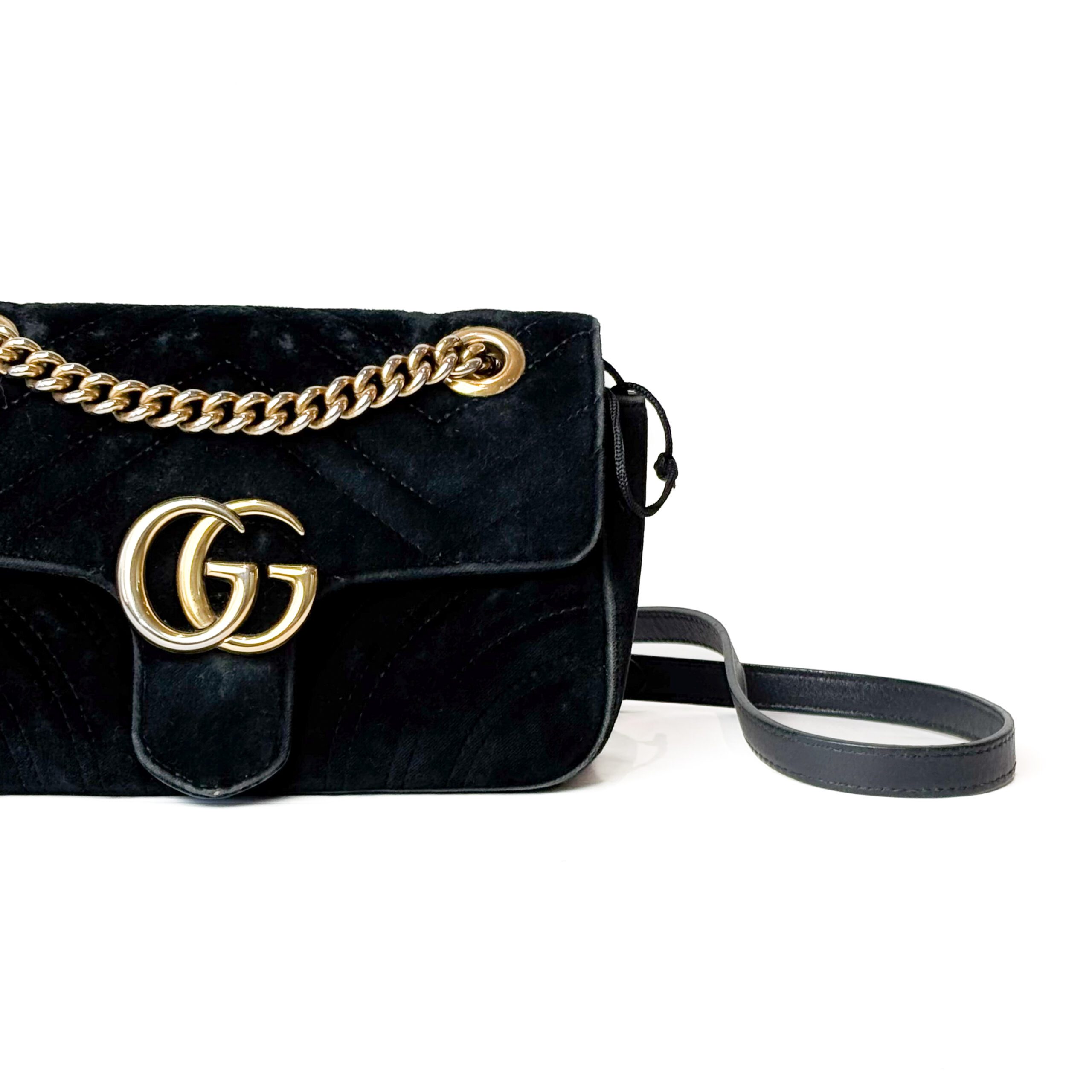 Gucci Black Velvet Mini GG Marmont 2.0 Shoulder Bag