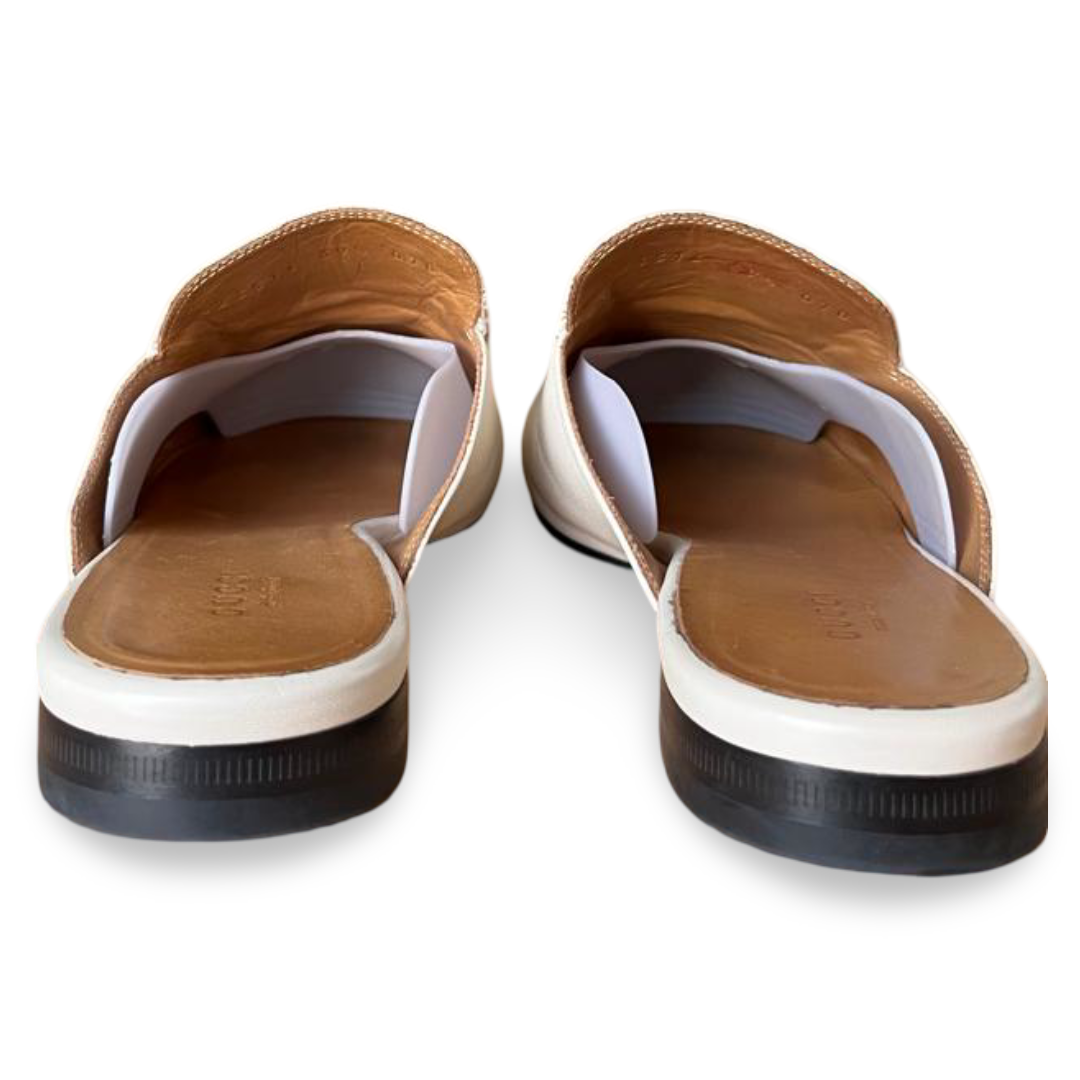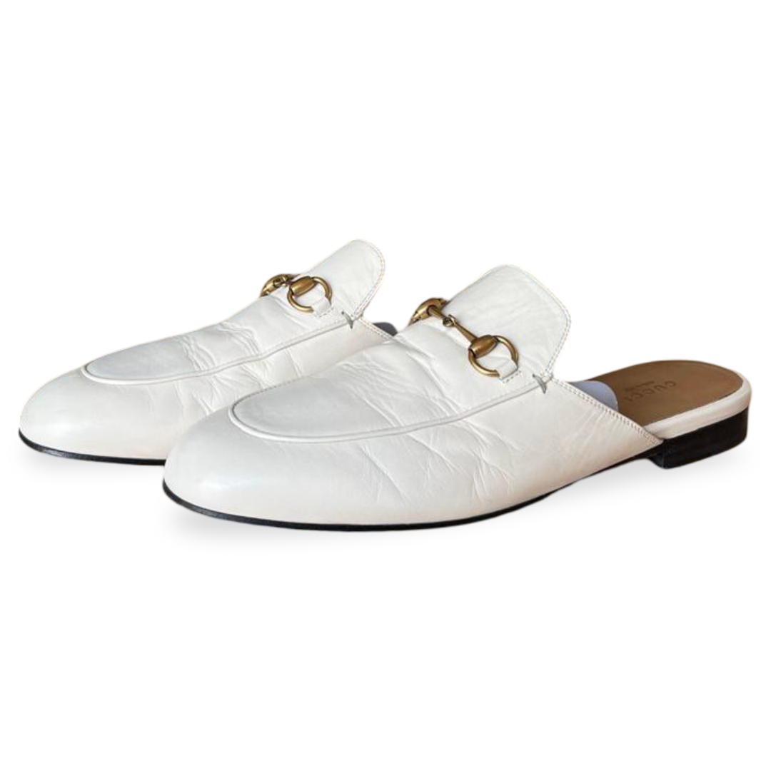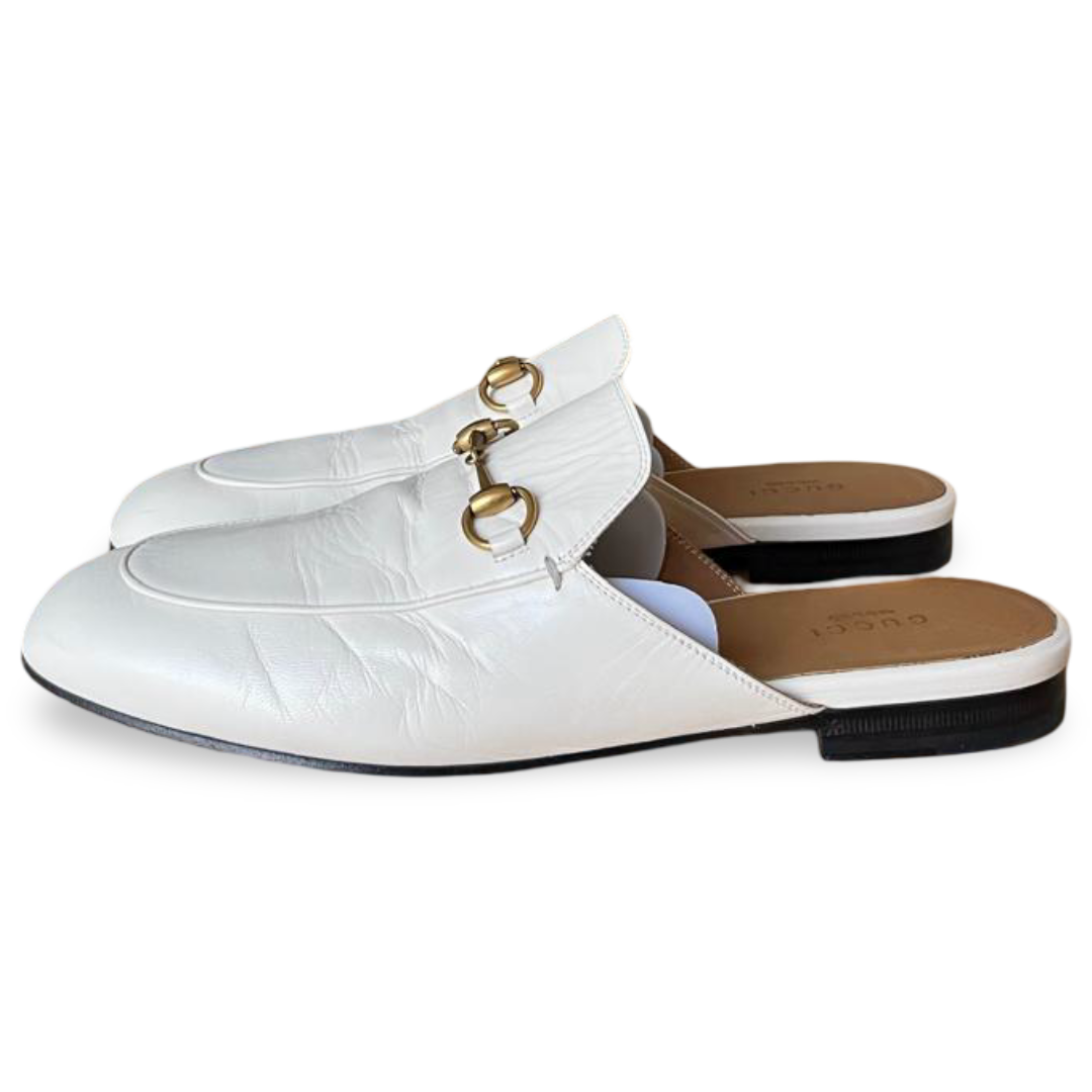 A modern classic, these Gucci Princetown Slippers are crafted in soft leather in a creamy off-white tone. Featuring the brand’s iconic gold-tone horsebit detail and a backless silhouette, they offer effortless sophistication and comfort.